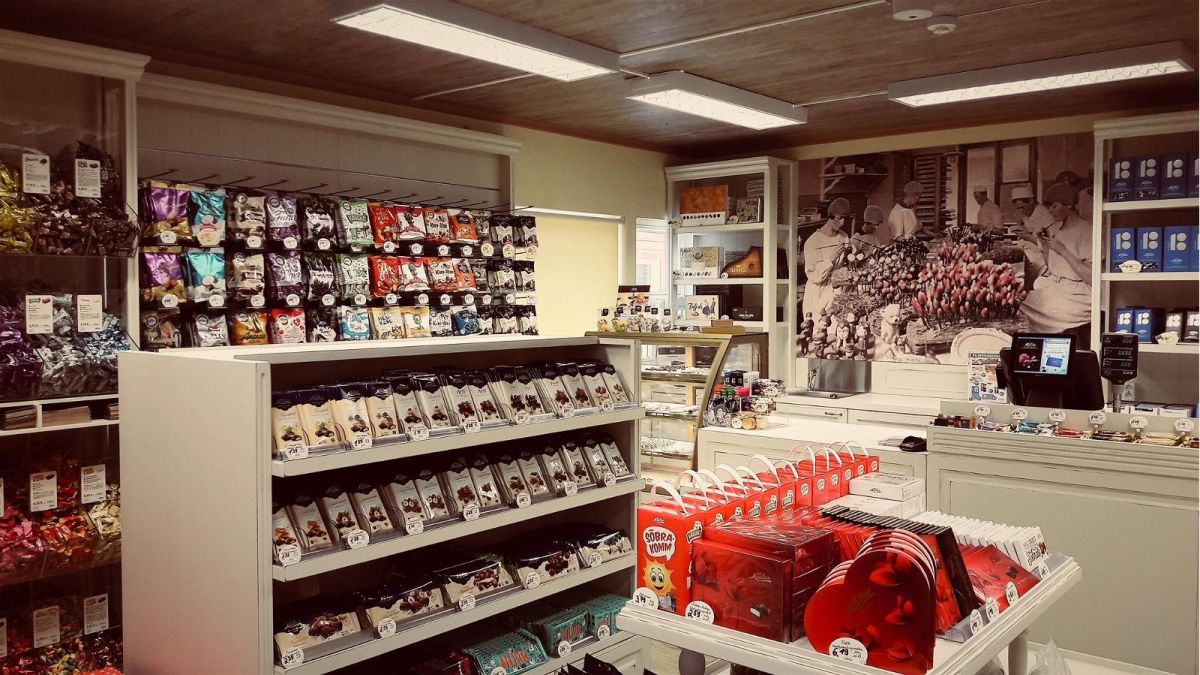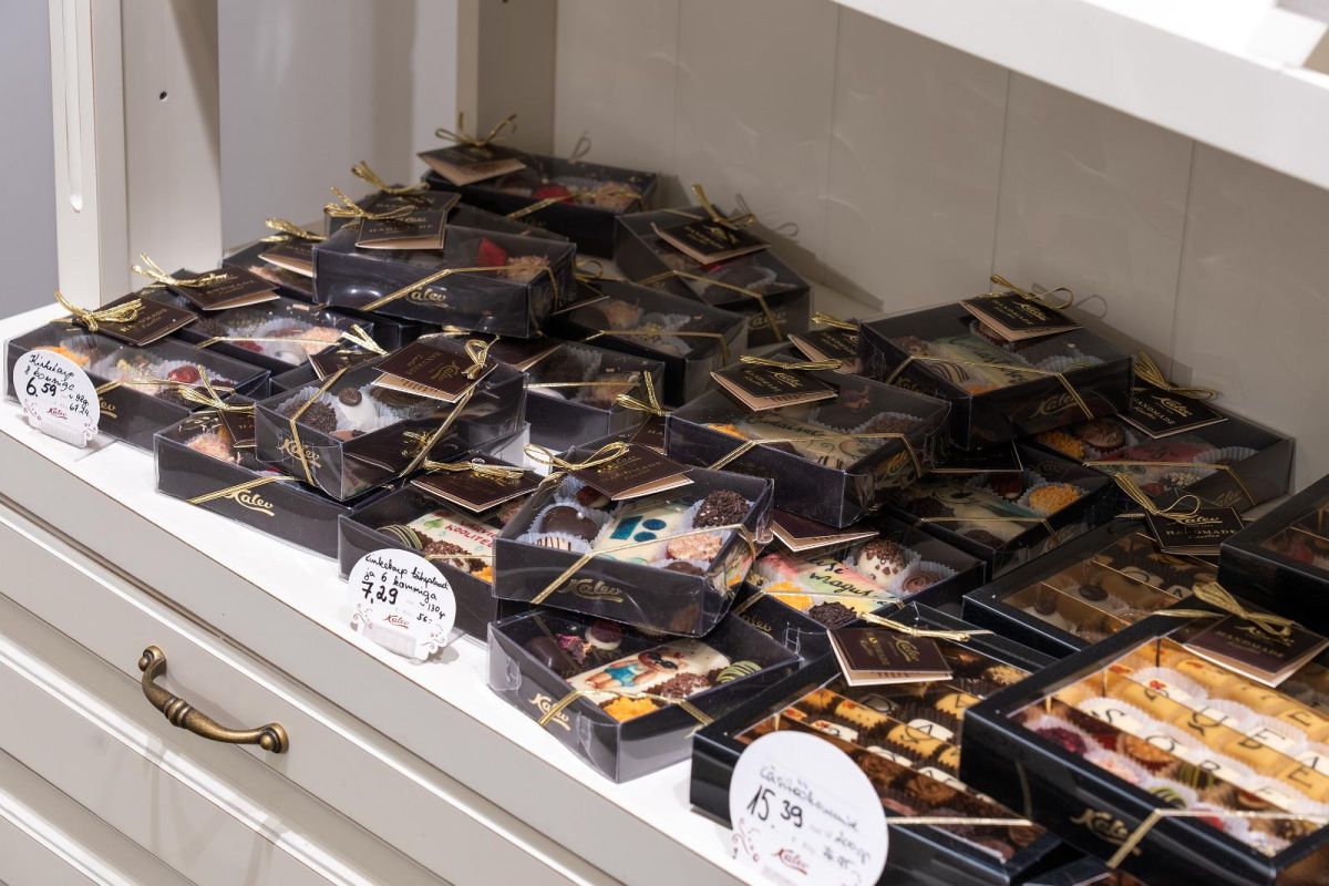 В нём Вы найдёте широкий ассортимент кондитерских изделий старейшей кондитерской фабрики Эстонии, а также эксклюзивные изысканные шоколадные конфеты ручной работы, а также прекрасные фигурки из марципана. На месте комплектуют красивые подарочные коробки разной формы и размера с понравившимися Вам сладостями.