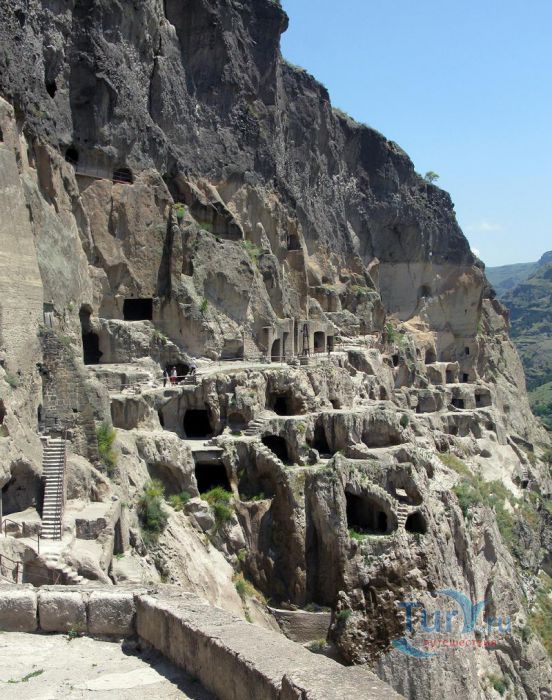 Вардзия находится в 18 км от Ахалкалаки, в непосредственной близости от границы с Турцией. Город был создан в XII - XIII веках во время правления Георгия III и его дочери царицы Тамары для защиты южных рубежей Грузии. Вардзия – это не просто хаотично вырытые в отвесной скале пещерные помещения. Это настоящий многоэтажный (!) комплекс с улицами, тоннелями и лестницами, ведущими мимо монастырей, храмов, крепостей, бань, библиотек, жилых построек и пр. Всего свыше 600 соединенных ходами помещений, которые простирались вдоль горы в длину на 800 метров , в глубину горы до 50 метров и в высоту на восемь этажей.