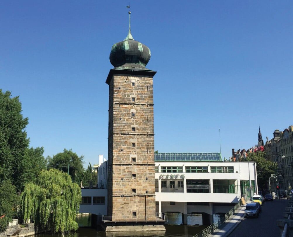 Выставочный зал Mánes был построен в 1930 г. Он возвышается на бетонных сваях над рукавом реки Влтавы, протекающей между набережной Масарика и Слованским островом. Благодаря уникальному функционалистическому дизайну здания посещение галереи дополняется возможностью полюбоваться не только её экспонатами, но и живописными уголками столицы.