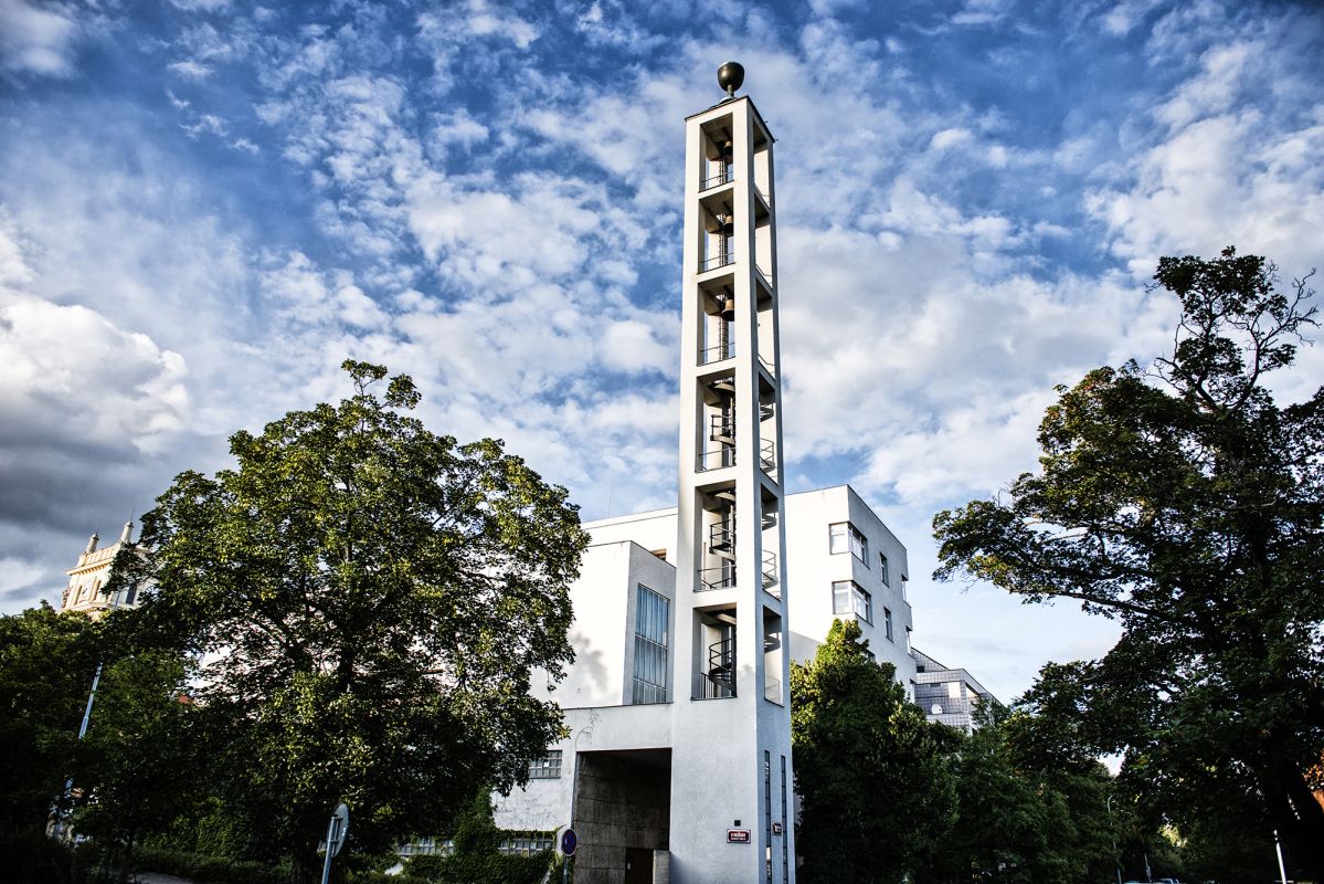 Здание нетрадиционной функционалистической постройки, принадлежащее Церкви чехословацкой гуситской, создано по проекту Павла Янака и является памятником архитектуры. Помимо церковных богослужений, здесь проводятся концерты, лекции, кинопоказы.