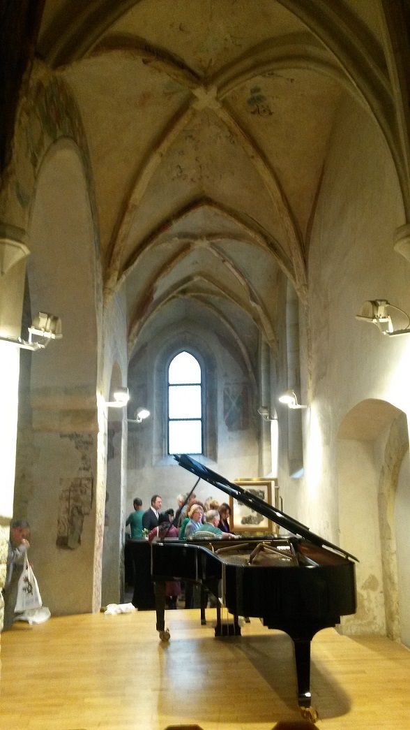 Романский костёл был перестроен в стиле готика, а в 1784 г. был преобразован в жилой дом с небольшими квартирами. Только в 1985-91 гг. он дождался генеральной реконструкции, которая максимально сохранила его оригинальные архитектурные черты. Костёл превратился в зал, в котором проводятся концерты, в частности, фестиваля «Пражская весна».
