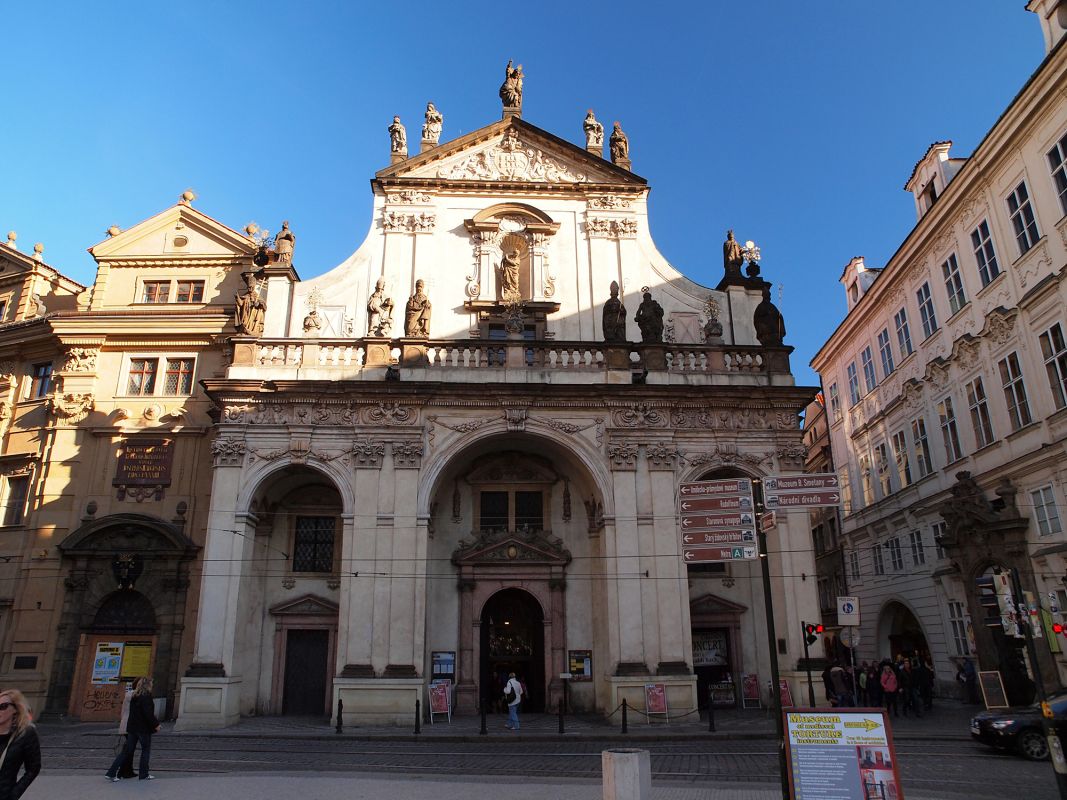 Одним из трех костелов, которые находятся на территории Клементинума (Klementinum), является костел Святого Спасителя в стиле раннего барокко. Фасад костела смотрит на Карлов мост, он стоит на месте бывшего монастыря доминиканцев с костелом Св. Климента (sv. Kliment). В период гуситских восстаний монастырь сожгли гуситы. После прихода иезуитов в Прагу в 1556 г. начало бурно развиваться строительство. Первоначальная постройка была снесена, а на большом участке земли начал создаваться обширный иезуитский комплекс, известный как Клементинум.