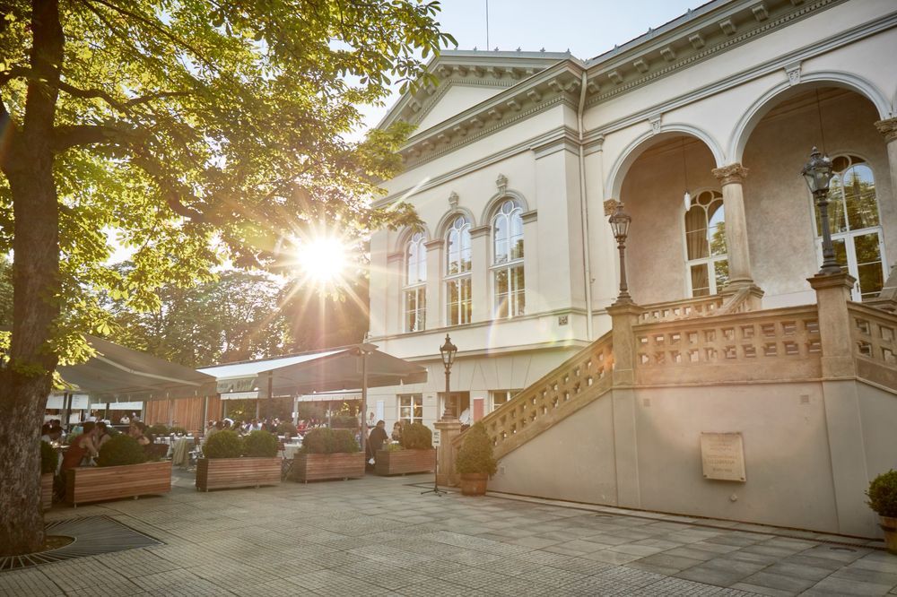 В живописном месте, в сердце Летенских садов, словно паря над Старым Местом, расположилось неоренессансное здание в стиле итальянских вилл, которое приглашает любителей красивой жизни одновременно насладиться неповторимым видом столицы и гастрономическими изысками в одном из четырёх здешних ресторанов.