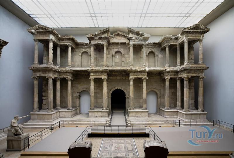 Музей был спроектирован архитекторами Альфредом Месселем и Людвигом Хофманом и построен в 1910 - 1930 гг. В нем хранятся реконструированные монументальные сооружения в натуральную величину, такие как Алтарь Пергамон, Рыночные ворота из Милетуса, Ворота Иштар, состоящие из частей, привезенных с мест археологических раскопок. Музей подразделен на античную коллекцию, музей Среднего Востока и Музей исламского искусства. Ежегодно его посещают около 850 000 человек. Музей Среднего Востока, расположенный в южном крыле, содержит одну из крупнейших коллекций предметов искусства из древнего Вавилона, Персии и Ассирии. Среди экспонатов представлены процессионная дорога с воротами Иштар из Вавилона, датируемая 580 годом до н.э, тронный зал Навуходоносора, а также клинообразные глиняные кусочки, подтверждающие существование цивилизаций, создававших керамику, стекло и металлические объекты в то время, когда Европа ещё была переполнена примитивными племенами. Верхний уровень музея Пергамон принадлежит музею исламского искусства, где размещены экспонаты, созданные в 8-19 веках н.э. Особый интерес вызывают миниатюры, ковры, резьба по дереву, а также фасад незаконченного исламского дворца Мшатта, подаренного Оттоманским султаном Абдулом Хамидом II императору Германии Вильгельму II.