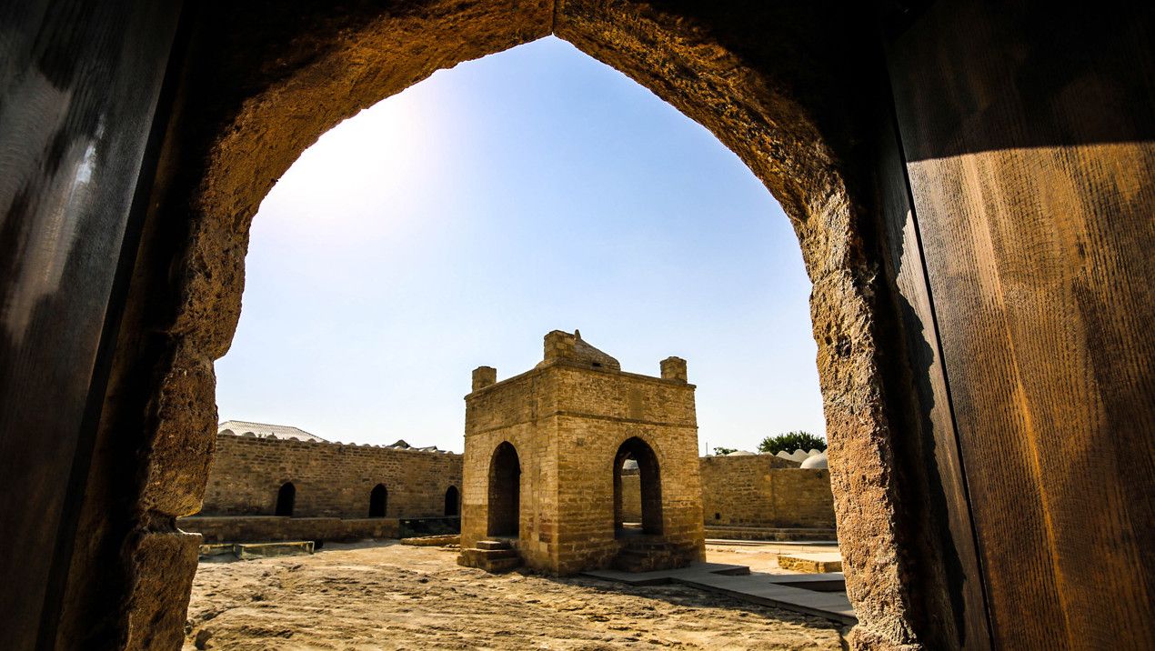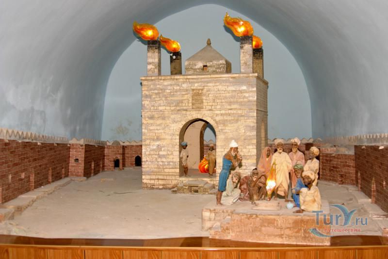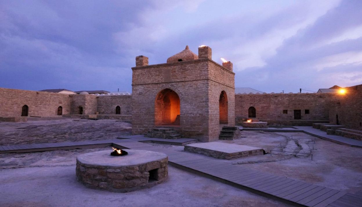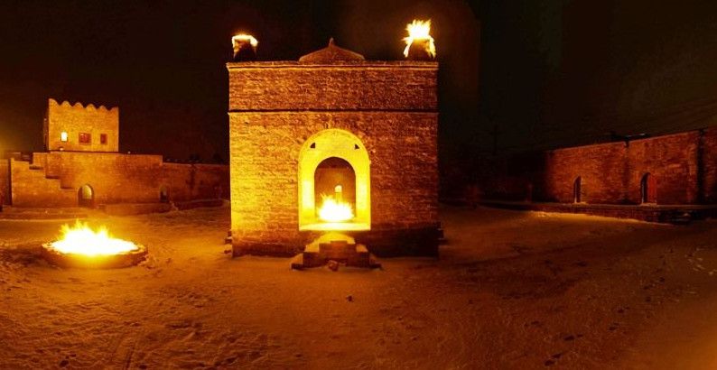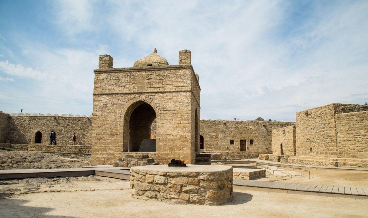 Храм вечного огня Атешгях – самая настоящая азербайджанская экзотика. О нем знают практически во всем мире. Он расположен в 30 км от центра Баку, на окраине селения Сураханы. Эта территория известна таким уникальным природным феноменом, как горящие выходы естественного газа (газ, вырываясь наружу, соприкасается с кислородом и загорается), что дало название храму - Атешгях, что буквально означает "Дом огня", "Место огня".