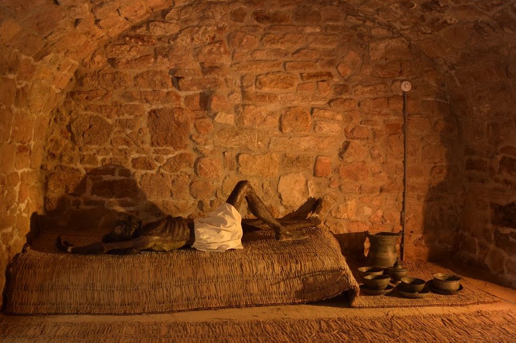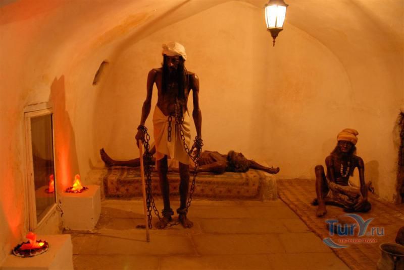 Близ храма-святилища находится четырехугольная яма, где прежде сжигали тела мертвых индусов на священном огне. Отшельники, насчитывающие несколько десятков человек, жившие в Атешгях, поклонялись огню, вели аскетичный образ жизни, истязая свою плоть и очищая душу. Они вешали на себя цепи, вес которых достигал более 30 кг, лежали на негашеной извести до омертвления отдельных частей тела. Они не трудились, жили за счет пожертвований индийских купцов. Над входами некоторых из келий размещены каменные таблички с краткими посвятительными надписями. До настоящего времени сохранилось 14 индуистских, 2 сикхских и одна персидская (зороастрийская) надпись.
