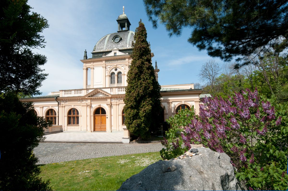 Посреди кладбища у главной аллеи находится участок, предназначенный для представителей еврейских религиозных общин и других известных деятелей, у входа на кладбище выделено место для почетных могил известных раввинов, таких, например, как доктор Натан Эренфельд (dr. Nathan Ehrenfeld) или доктор Густав Сихер (dr. Gustav Sicher). При входе на кладбище также находится памятник Патрия (Patria), посвященный погибшей еврейской общине из Нижних Краловиц, в форме обычной каменной глыбы, а также Памятник жертвам Первой мировой войны, изготовленный в 1926 г. в форме прямоугольного монолита, поставленного на двух прямоугольных тумбах. Вдоль восточной кладбищенской стены находятся пышные семейные склепы, например, таких известных предпринимательских семей как Петшек (Petschek) или Валдес (Waldes). Склеп семейства Валдес украшен двумя рельефными бюстами – последним творением Йозефа Вацлава Мысльбека (Josef Václav Myslbek).