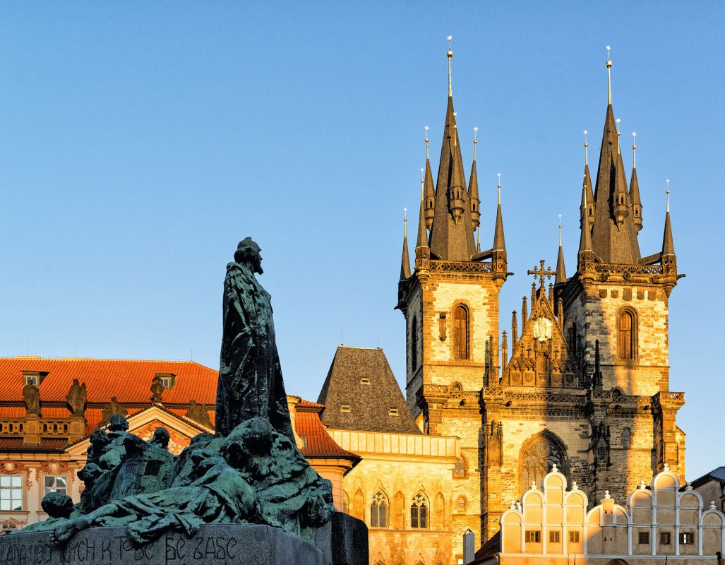 Старе Место – пл. Староместске намести; памятник из камня и бронзы, автором которого является Ладислав Шалоун, принадлежит к самым известным символьным работам в стиле модерн чешской монументальной скульптуры.
