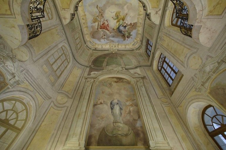Символом ордена стал образ Непорочного Зачатия Девы Марии в овальной золотой медали, окантованной белой эмалью. Аристократки проживали на 1-м и 2-м этаже института. Кроме того, в ареале размещались помещения аббатисы, гостинная комната, помещение капи́тула, хора, часовня Пресвятой Троицы и Непорочного Зачатия Девы Марии (одно название часовни), построенная в стиле барокко, и подсобные хозяйственные помещения.
