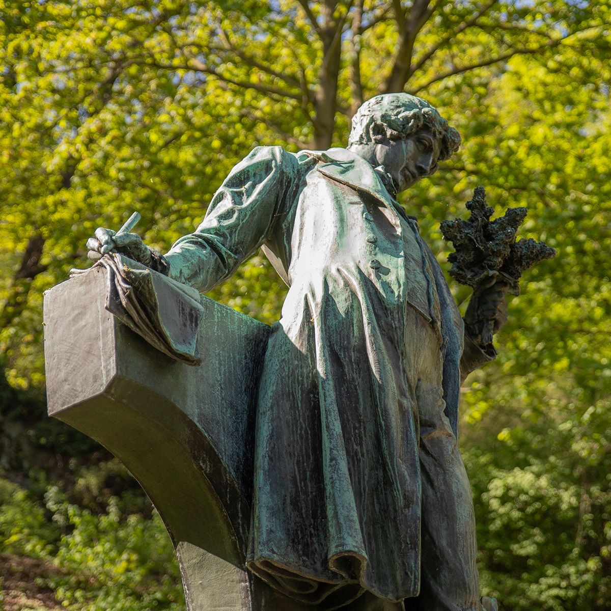 Бронзовый памятник Карла Гинека Махи, родившегося недалеко в доме «У Белого орла» в Уезде.