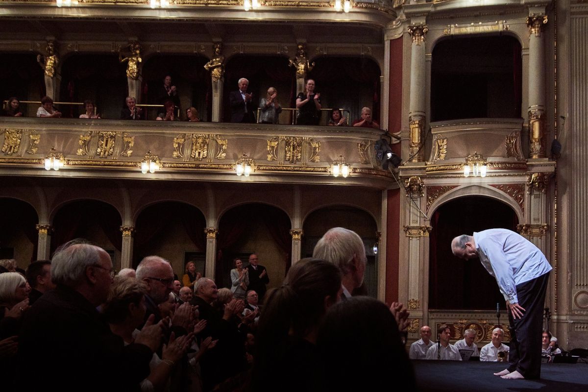 Здание театра является одной из главных достопримечательностей площади Мира в пражском районе Винограды. Светлое здание из желтого кирпича в стиле «модерн» было построено в 1907 году по проекту архитектора Алоиса Ченски. Особое величие ему придают две огромные статуи Истины и Смелости, а также античные колонны на балюстрадах. Это не только великолепный памятник архитектуры, но и один из главных центров культурной жизни Чехии. Divadlo na Vinohradech являетсяодной из ведущих театральных площадок Чешской Республики. Спектакли проходят в двух помещениях: главном зале, рассчитанном на 767 мест, и малом зале, вмещающем до 60 зрителей.