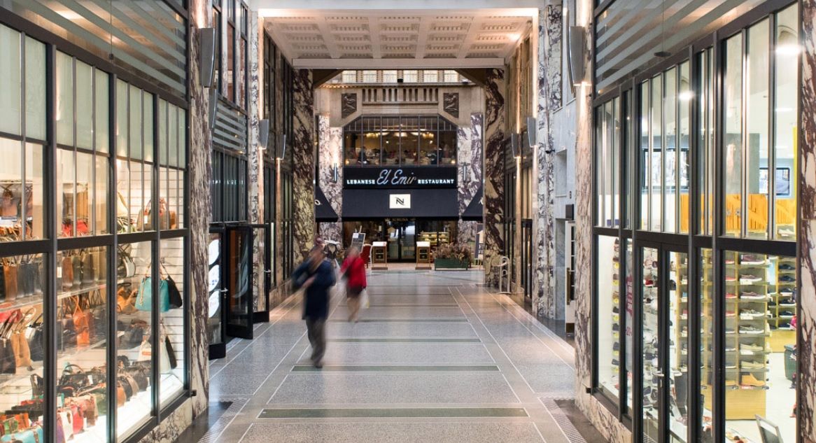 Дворец в нижней части Вацлавской площади был построен в стиле позднего модерна. Главным декоративным украшением является угловая башенная конструкция, напоминающая корону. Ниже расположились аллегорические скульптуры работы Станислава Сухарды. Сегодня он является торгово-адиминистративым центром со множеством магазинов, ресторанов и офисных помещений.