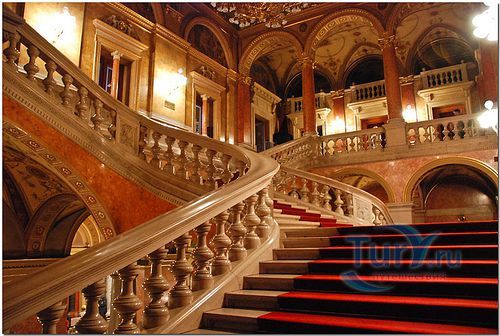 Венгерский государственный оперный театр, открытый в 1884 году, является крупнейшим оперным театром в Венгрии. Театр является также основной сценой и для Венгерского национального балета. Здание театра, построенное в стиле неоренессанс было спроектировано архитектором Миклошем Иблем в период между 1875 и 1884 годами. Строительство было профинансировано правительством, а также Австро-Венгерским императором Францем-Иосифом. Здание театра, ранее носившее название Венгерский королевский оперный театр, богато украшено выполненными в стиле барокко орнаментами. Оперный театр является шедевром венгерской архитектуры. Зрительный зал, вмещающий 1261 зрителя, выполнен в традиционной для театров форме подковы. По своей вместимости и размерам театр не вошел в число крупнейших, но по качеству акустики считается одним из лучших театров оперы в мире. По своим акустическим возможностям сцена зала занимает третье в мире место, после «Ла Скала» и «Парижского оперного театра». Интерьер театра декорирован скульптурами и картинами ведущих деятелей искусства периода 19 века. Особый интерес представляет настенная живопись работы Берталана Секея, Мора Тана и Кароя Лотца, расположенная вдоль лестниц внутри здания и в зрительном зале. Экстерьер театра украшают статуи Ференца Листа – самого известного композитора Венгрии, и Ференца Эркеля - автора венгерского национального гимна. За время своего существования театр повидал большое количество известных музыкантов. Среди них были: Густав Малер, Отто Клемперер, Янош Ференчик, Бела Барток и Джакомо Пуччини, дважды ставивший свои оперы на сцене театра. При проектировании и строительстве театра были использовано новаторское для того времени оборудование. Именно здесь впервые было установлено гидравлическое оборудование, использовавшееся для подъема сцены. Во время Второй мировой войны театр практически не пострадал. В 1945 году были возобновлены оперные постановки. Спустя еще пять лет зал был расширен. В 1979 году театр был закрыт на капитальный ремонт по причине аварийности здания. Торжественное открытие Венгерского государственного оперного театра состоялось ровно через сто лет после первой премьеры, поставленной на сцене Венгерского королевского оперного театра. При посещении Венгерского государственного оперного театра стоит учесть то, что в театре гардероб платный (за исключением гардеробов для балконов), оплата незначительная, но только за наличный расчет. Антракты больше, чем сами представления. В перерывах сервируется буфет, где разливают токайское вино по бокалам, продают бутерброды. В антракте можно выйти с бокалом вина на террасу на верхнем этаже, которая открывает великолепный вид проспект Андраши. Билеты в оперу можно приобрести через интернет, либо в кассах театра. О приобретении билетов, стоит позаботиться заранее, так как цены – достаточно демократичны. Билеты на места в первом ряду на двоих обойдутся не более 100$. Так что свободных мест на представлениях не бывает. Помните, что в Государственной Венгерской опере действует дресс-код. Дамы должны быть в элегантных вечерних платьях (драгоценные украшения приветствуются), мужчины - во фраках, ну или хотя бы в классических костюмах. Кроме обычных театральных постановок, ежедневно в театре проходят экскурсии на различных, в том чис