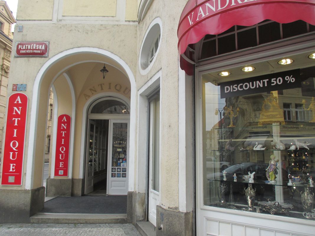 Целевое направление – предметы эпох барокко, модерн, новейшего ар-деко, ар-нуво и кубизма. Кроме мебели и картин, здесь представлены ювелирные изделия, стекло, керамика и большой ассортимент коллекционных карманных и наручных часов. Магазин расположен неподалёку от Карлова моста, рядом с отелем Four Seasons.