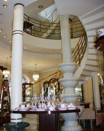 На трех этажах прекрасного торгового дворца представлен богатейший выбор практически всех местных производителей фарфоровых изделий (прославленный Cibulák, Růžový porcelán (розовый фарфор), карловарский Thun), а также заграничных фирм. Украшением ассортимента является великолепный мейсенский фарфор.