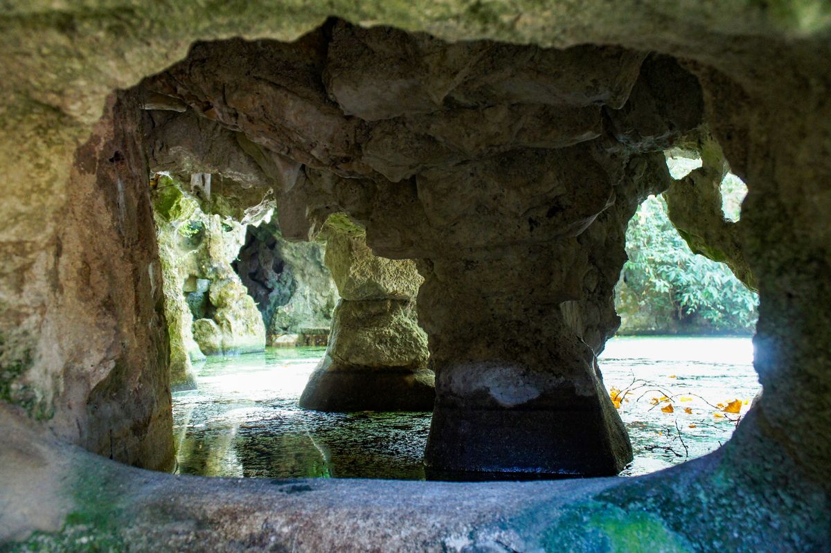 Грот Лабиринта и озеро, верхняя часть туннелей в Регалейре не является непосредственно лабиринтом, но имеют отношение к нему и его символическому значению, поскольку его подземные пути могут вести в разные стороны.