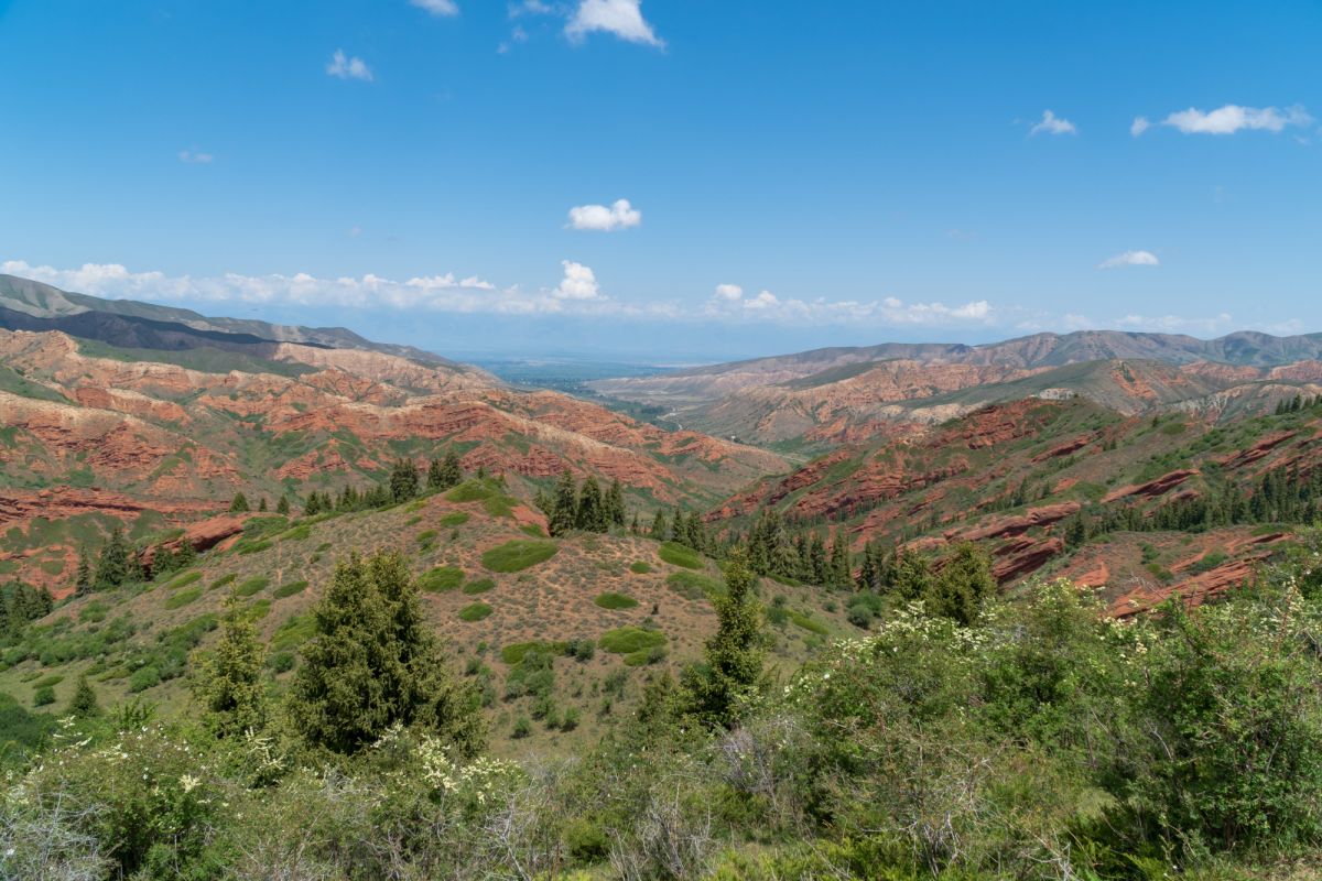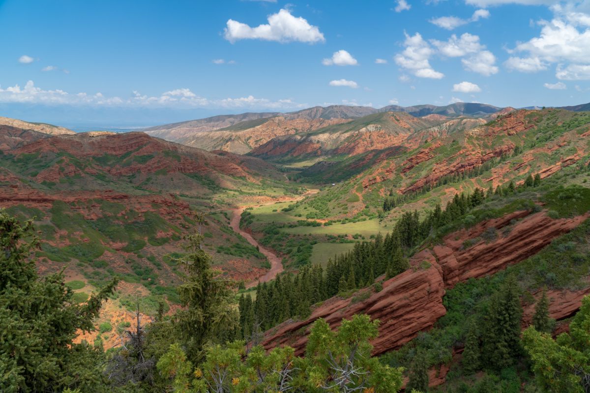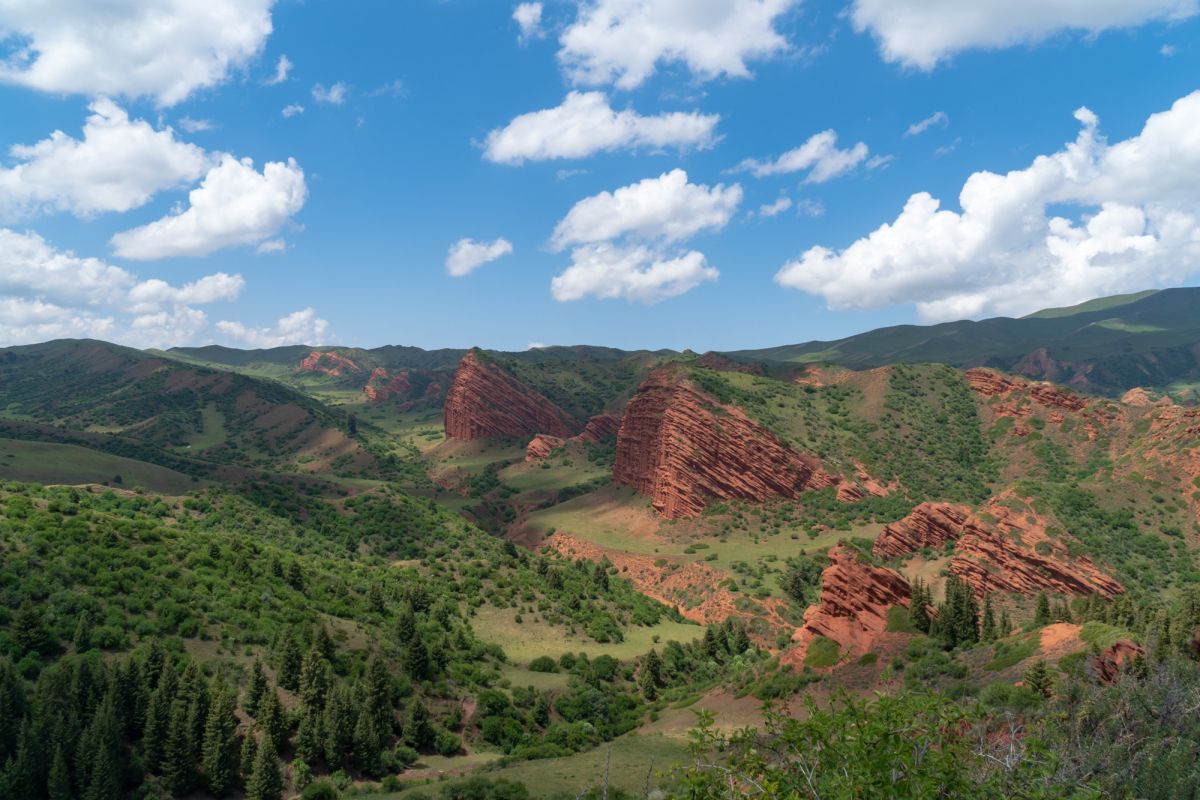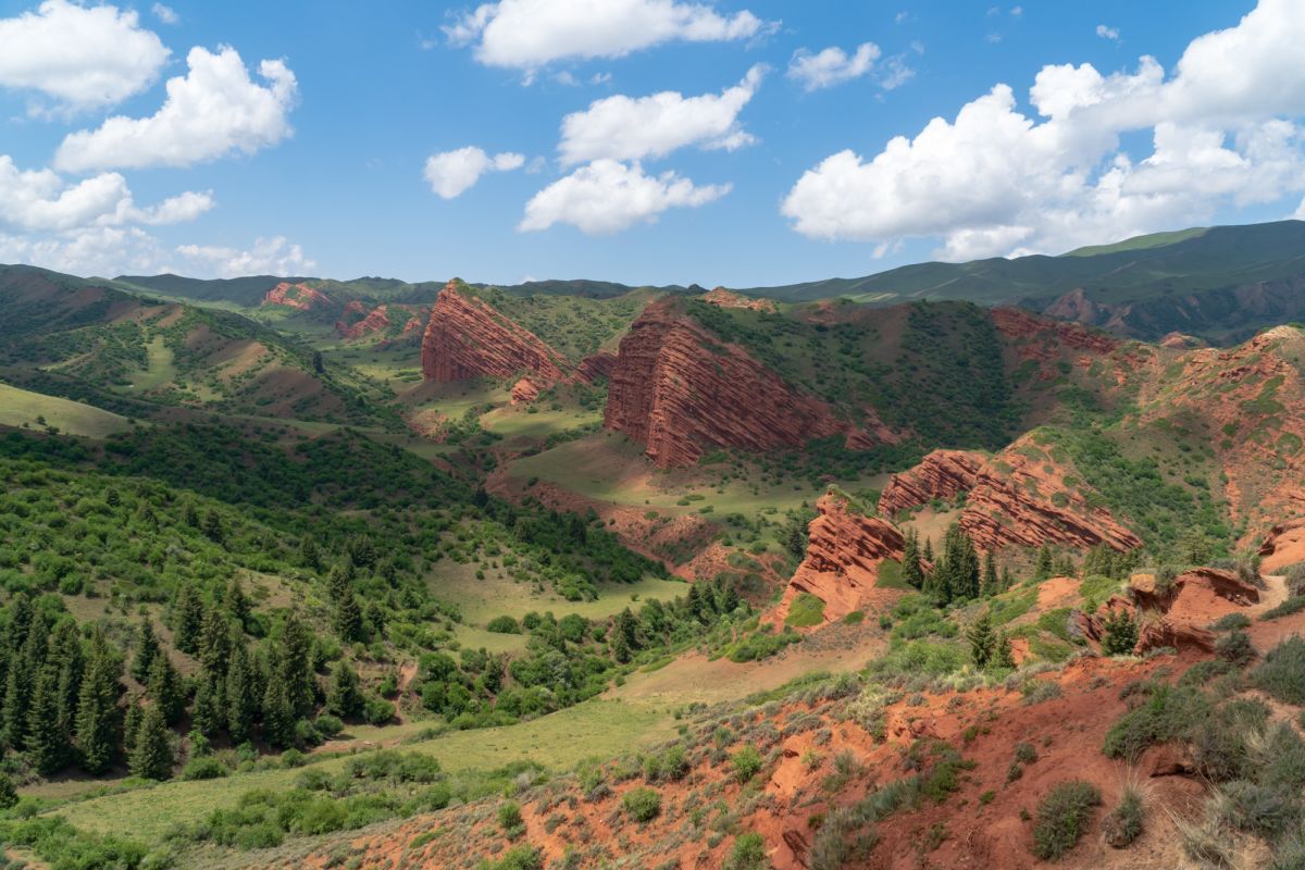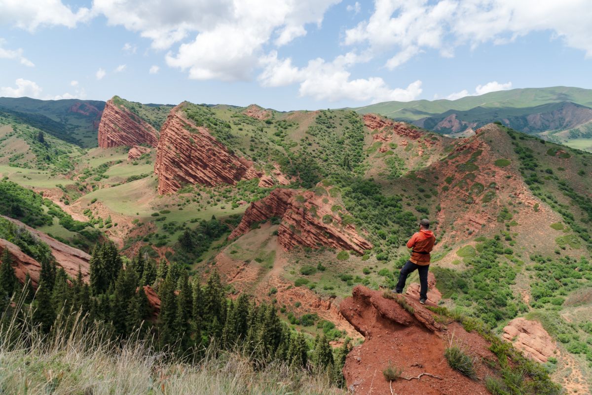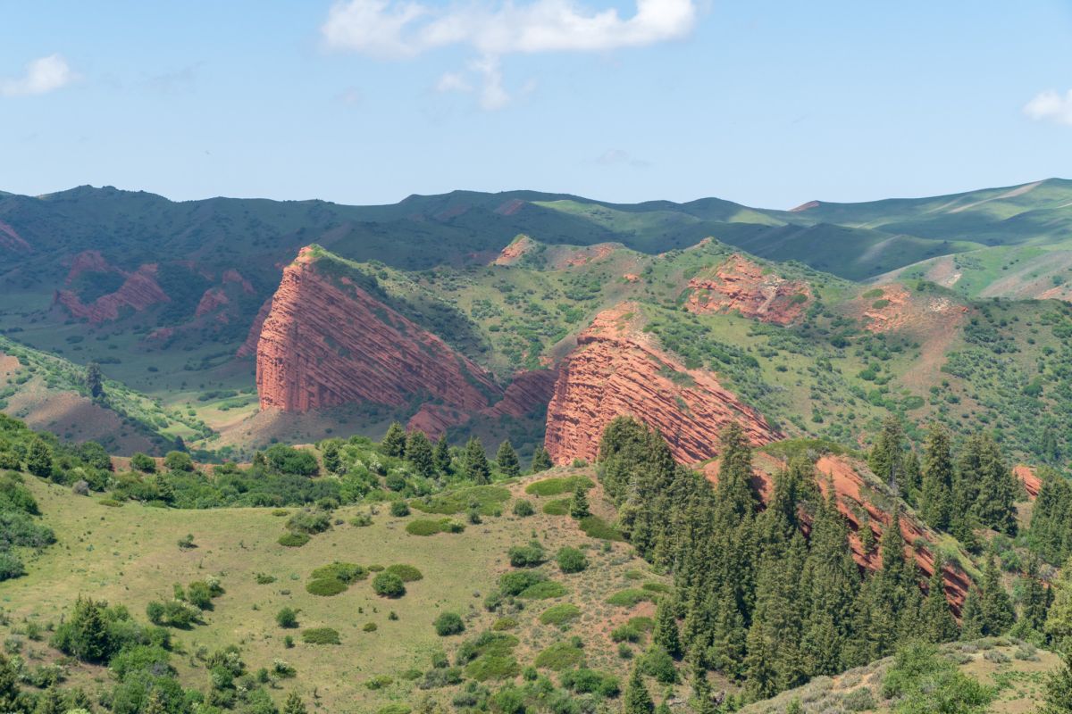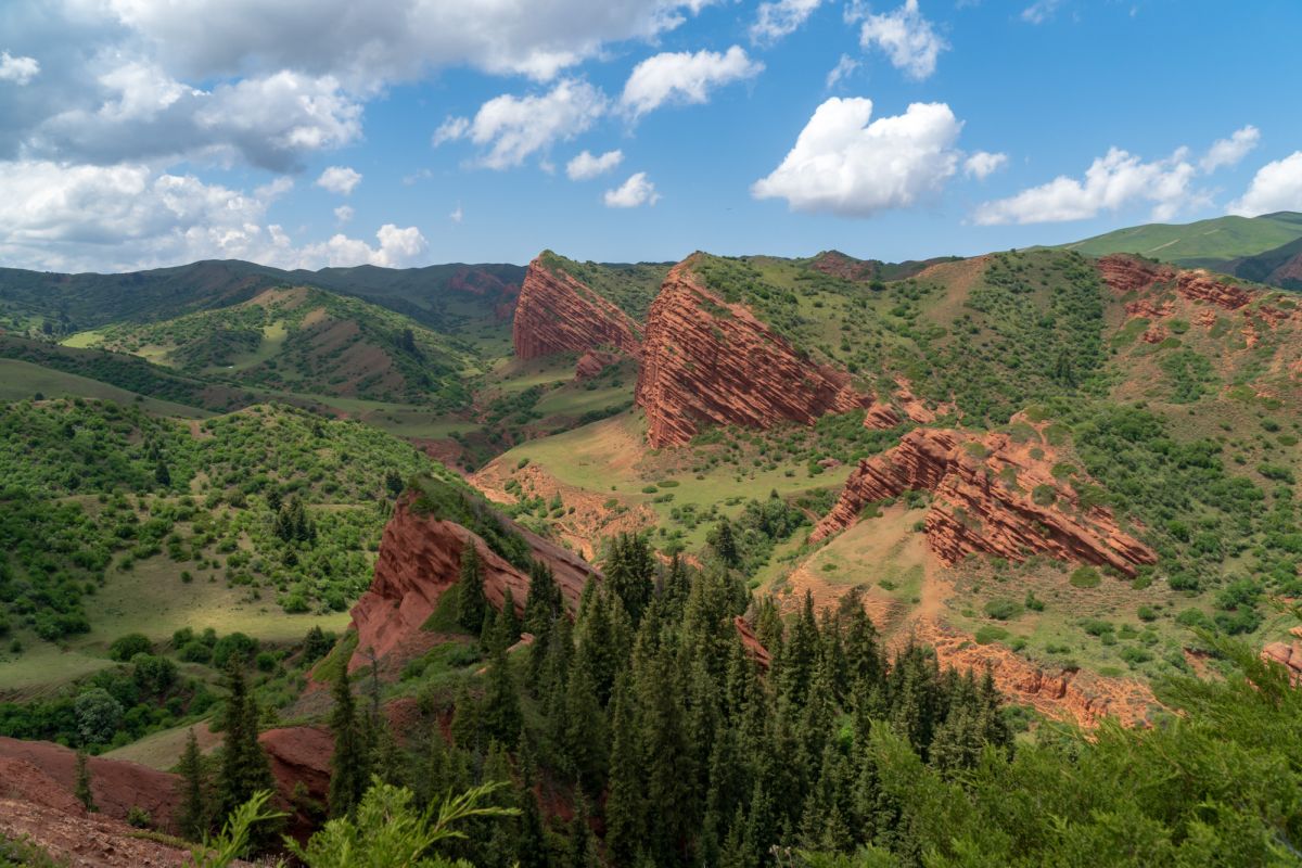 Живописное ущелье Джети-Огуз расположено в 28 км к юго-западу от города Каракол. Его название в переводе с кыргызского языка означает «семь быков», поскольку здесь протянулась громадная стена из семи красно-бурых скал, напоминающих выстроенных в ряд яростных быков. Особенно романтично выглядит скала «Разбитое Сердце», расположенная у въезда в ущелье. На высоте 2200 м построен лечебно- оздоровительный курорт Джети-Огуз известный своими геотермальными источниками. В ущелье Джети-Огуз на высоте 2500 м находится Водопад Девичьи Слезы. Чистейшие воды высокогорных ручейков множеством струек падают вниз по 40-метровой крутой скалистой стене и пленят взор, напоминая нежные девичьи слезы.