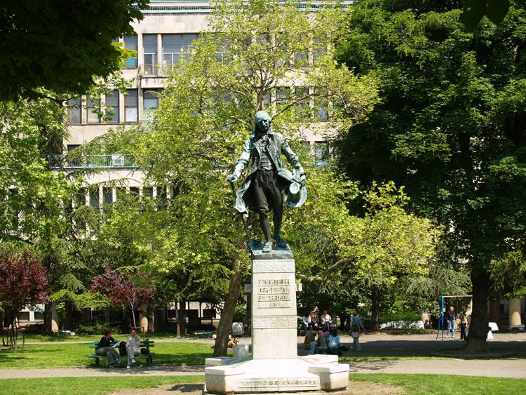 Памятник великому сербскому просветителю и писателю, воздвигнутый в 1914 году, изначально находился на улице Князя Михайлова, у входа в парк Калемегдан. В 1930-е годы, когда был создан Академический парк, памятник переместили туда. Бронзовая фигура скульптора Рудольфа Вальдека изображает первого сербского просветителя как «героя пера, путешествующего по миру в поисках знаний». Доситей Обрадович изображен в движении со шляпой, тростью и книгами, а на нижней части пьедестала написаны его слова: «Учись во время прогулки, смотри на века!»