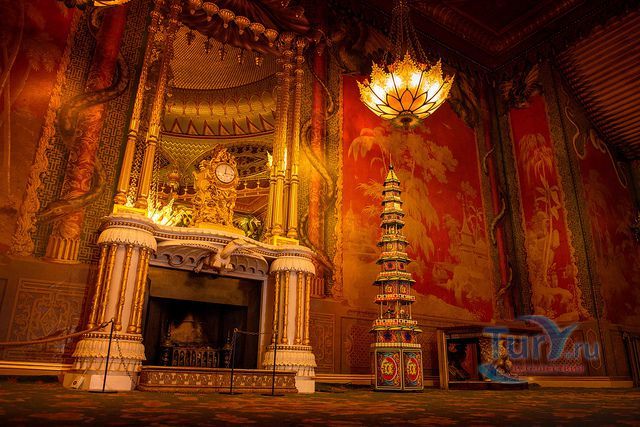 Внутреннее убранство выполнено в смешанном стиле из индийских и мавританских мотивов, типичных для колониального стиля времён регентства Георга. Минареты и резные порталы напоминают о путешествиях за три моря, а интерьеры в китайском стиле создают уют и комфорт. Этот фантастический дворец в центре современного Брайтона, построенный и отделанный под сильным влиянием китайской и индийской колониальной моды, поражает обилием восточных декоративных элементов, а интерьеры дворца являют собой самый экстравагантный образец стиля шинуазри с его оригинальной мебелью и яркими цветами.