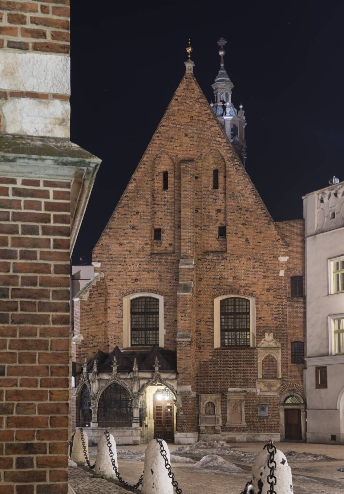 К костелу примыкают постройки монастыря Иезуитов (угол Малого Рынка и ул. Сенной). В конце XVIII века в них размещалась университетская клиника. Руководил ею проф. Рафал Юзеф Червяковски, отец польской хирургии и анатомии, который проводил тут вскрытия человеческих останков и прозекторские практические занятия. Материалом для вскрытий были трупы казненных либо тайно купленные у могильщиков трупы бедняков. Весть о том, что профессор «режет трупы», вызвала такое возмущение среди жителей Кракова, что медик вынужден был некоторое время ходить по городу с эскортом городской стражи.