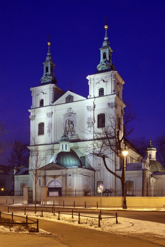 Из-за своего местоположения (за городскими стенами Кракова) храм неоднократно подвергался нападениям: в первый раз во время татарского нашествия в XIII веке, но самые большие разрушения нанесли шведские войска в 1655 году. Нынешний костел был построен во II половине XVII века, и до сегодняшнего дня в значительной мере храм сохранился в стиле барокко.