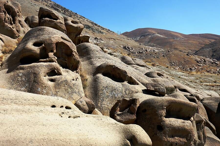 Когда вы переходите дорогу, вы неожиданно сталкиваетесь с странным видом на горы волшебной формы. Об этих странных горах ходит много историй и легенд. Некоторые считают эти камни окаменевшей этнической группой. А некоторые говорят, что это остатки старинного замка, от которого сейчас остались только эти камни. Рядом с горой есть место, где вы можете припарковать свою машину, а затем подняться на эти волшебные горы, встать среди гномов и каменных икон и полюбоваться красотами этих странных форм. Разумеется, научной причиной их создания является коллаборация скалы с ветром.