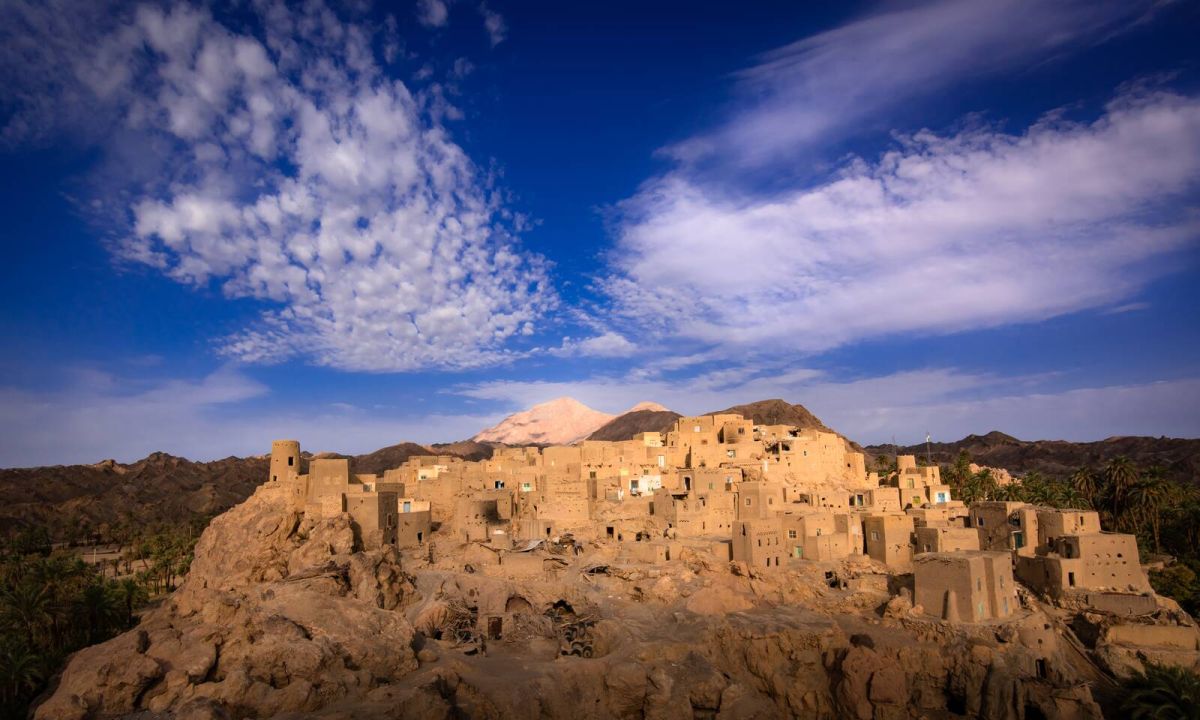 Высокие стены, окружающие деревню, соединяются со стенами крепости, чтобы защитить территорию, здесь располагаются три башни трехсотлетней крепости Найбанд.