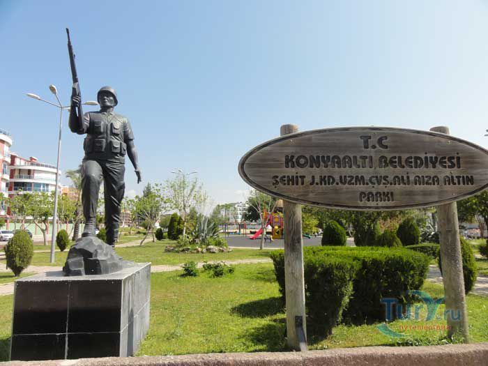 В районе Коньяалты в микрорайоне Хурма находится памятник, посвященный солдату. На протяжении многих столетий образ солдата приковывал к себе большое внимание, потому что солдат - это защитник Родины. Солдатам, отдавшим жизнь за правое дело, всегда возводятся памятники. Деятели литературы и искусства воспевают героизм солдата в своих произведениях. Он является героем многочисленных художественных произведений, песен, легенд, сказок, баллад. И в Коньяалты, на одной из центральных улиц, возле красивого детского парка, воздвигнут памятник солдату. Старшее поколение, гуляя с детьми в парке, рассказывает о солдате, стоящем на постаменте, который олицетворяет погибших в бою героев, выполнявших свой долг.
