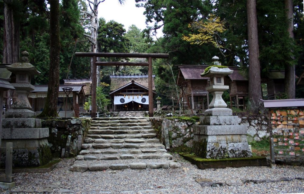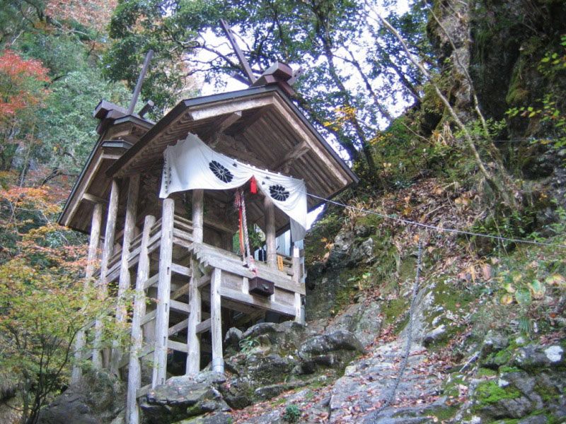 Это древнее святилище - одно из мест, где была возведена Аматэрасу, синтоистская богиня солнца, перед тем, как переехать в великое святилище Исэ-дзингу в префектуре Мие. Фактически, это святилище предшествует Великому святилищу Исэ-дзингу на пятьдесят четыре года. Это также одна из двух святынь в Японии, где используются ворота тории из черного кедра. Храм находится в нескольких минутах ходьбы от местного железнодорожного вокзала и еще одного соседнего храма, называемого Храм Аманоивато, расположенного в овраге на склоне скалы. Существуют легенды, согласно которым Аматэрасу жила под этой скалой в период уединения.