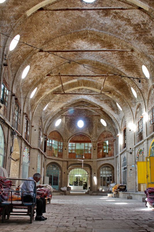 Базарная архитектура интересна купольными арками и кирпичным оформлением фасадов. Потолок базарного купола покрыт глиной, а внутренняя поверхность купола украшена в стиле Расми Банди (разновидность украшения иранской архитектуры). На пересечении двух основных направлений базара есть два фантастических базара Чахар; Купол Чахар Сук - самая высокая и массивная купольная крыша. В центре каждого купола встроен люк для освещения коридора и кондиционирования воздуха. Коридоры Нозари, Книготорговли и Кашани - самые важные коридоры на базаре.