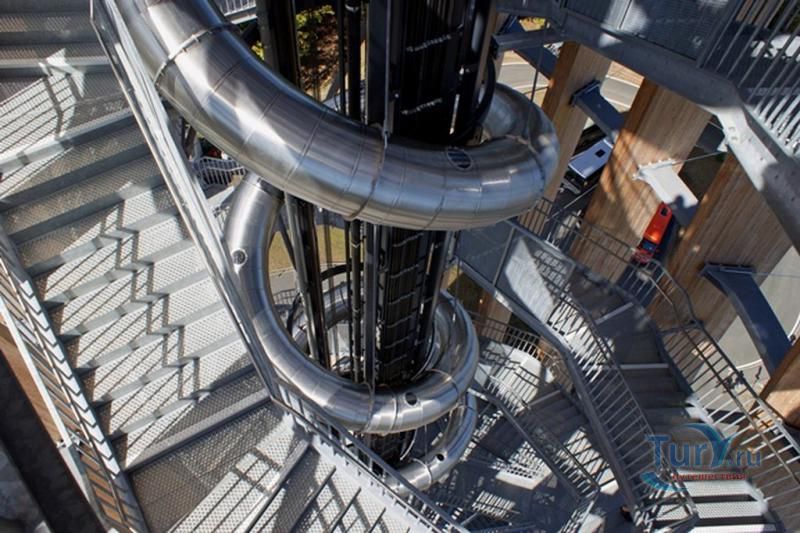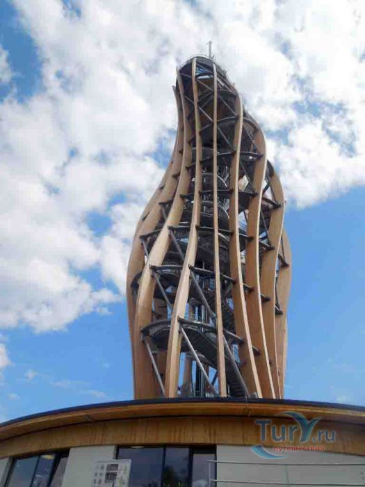 Башня на горе Пирамиденкогель - уникальная, самая высокая в мире, смотровая башня из дерева и стали, возведенная возле озера Вёртерзее. Открылась после реставрации в 2013 году. Её предшественница была построена в 60-х годах прошлого века. Высота старой башни составляла 54 метра, но за счет выгодного расположения на горе, посетителям открывался захватывающий дух панорамный вид с высоты 851 метр над уровнем моря. Новая конструкция стоимостью 8 миллионов евро была разработана в архитектурном бюро Маркуса Клаура и Дитмара Кадена. Неоспоримым достоинством конструкции горка для спуска длиной в 120 метров и с уклоном в 25 градусов. Горка пользуется невероятной популярностью у маленьких посетителей, ведь спуск длится целых 18 секунд, что для горок является вечностью. Подняться на обзорную башню Пирамиденкогель можно по ступенькам, но если времени и сил нет, тогда к услугам посетителей предлагаются скоростные лифты, способные доставить на обзорную площадку за 24 секунды. Стоит сказать, что реализация нового проекта прошла не совсем гладко. Многие выражали своё недовольство строительством башни. Одни считали её уродливой, другим не пришлась по душе конструкция из дерева, отдельные горожане возмущались начальной ценой постройки, кто-то считал такое сооружение «манией величия». За реализацию проекта всеми силами боролся бургомистр Олешко. По его словам, новая башня Пирамиденкогель — это проект не только на пользу детям, но и внукам. Таким образом, для Герхарда Олешка мечта стала реальностью вопреки всем преградам. Башня предназначалась в первую очередь для людей и включила в себя иные объекты инфраструктуры. Здесь есть ресторан, расположенный на высоте 70 метров с великолепным видом на озеро, магазин сувенирной продукции, игровая площадка для детей и звери, которых можно гладить и кормить. Башня является безбарьерной зоной, что делает возможным посещение объектов башни для людей с ограниченными возможностями. Множество панорамных экскурсий предлагают в башне обозрения. Благодаря установленным подзорным трубам родители и дети смогут увидеть, что происходит на озере Вертерзее. Прогнозируется, что башня высотой в 100 метров, станет одной из самых популярных достопримечательностей австрийской Каринтии. Тем более, что цены на билеты достаточно демократичны, а на групповое посещение действуют скидки. По предварительным прогнозам ожидается около 200 тысяч посетителей в год. Председатель строительного комитета господин Штайнер заявил журналистам, что новая обзорная башня Пирамиденкогель — это «символ красоты, зодчества и творческой силы человечества».