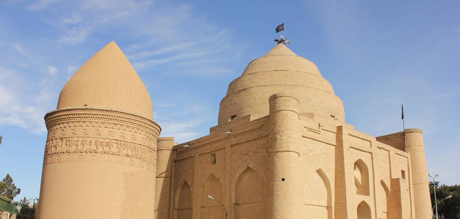 Надпись частично разрушена, и можно прочитать лишь несколько слов. Тем не менее, куфический скрипт и некоторые фразы этого предложения «امر به بناء هذا لقبة الامیر الجلیل الامیر الجلیل الامیر الجلیل ابوشریر الجلیل ابوششاع» (то есть здание было построено по заказу Амира аль-Джалиля Абу-Шои как его мавзолей), а также слово ثلثمائه Salsamae в конце текста, указывающего, что он был построен в четвертом веке хиджры, узнаваемы.