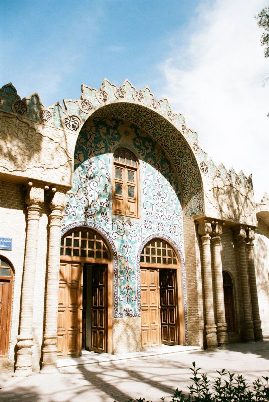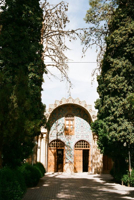 Здание расположено в саду вечнозеленых кедров. Входное крыльцо Национальной библиотеки Кермана — еще одна привлекательная часть этого здания, искусно украшенная плиткой и кирпичом. Посетив это здание, вы, вероятно, увидите некоторое сходство с Национальным садом Тегерана, что неспроста; архитектор обоих зданий один и тот же! Завораживающая плитка и кирпичная кладка Национальной библиотеки Кермана придали этому памятнику особый вид.