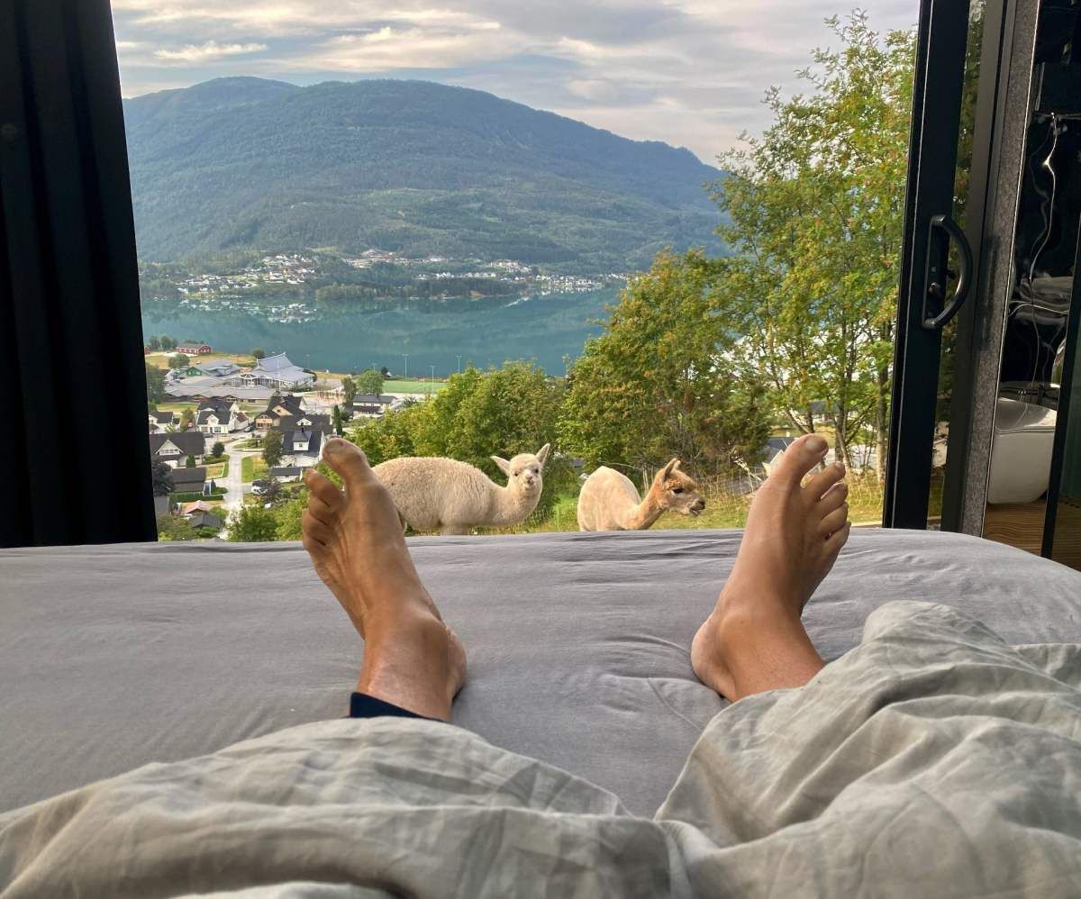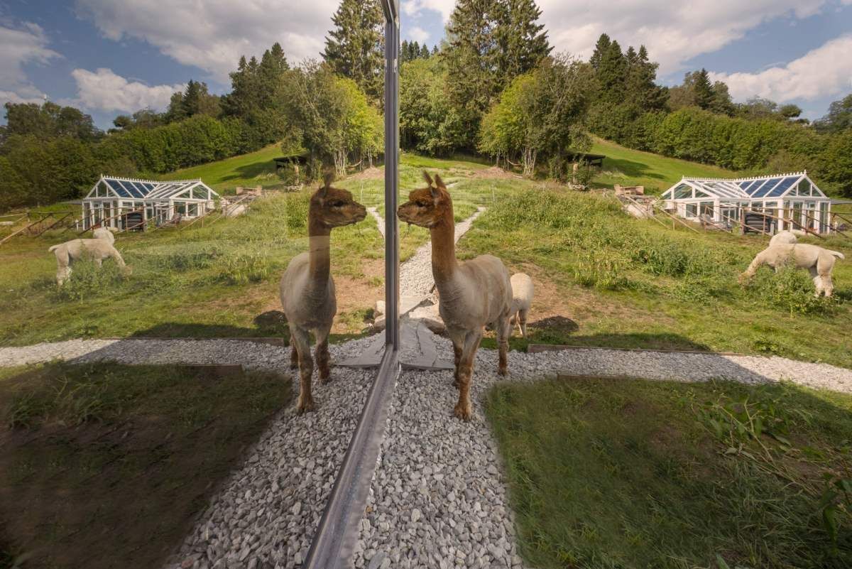 Стоимость ночлега в стеклянных домах с альпаками на улице составляет 3900 крон за ночь на двоих.