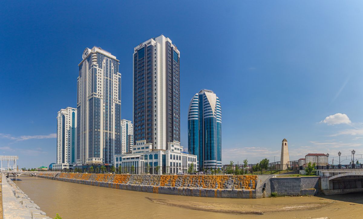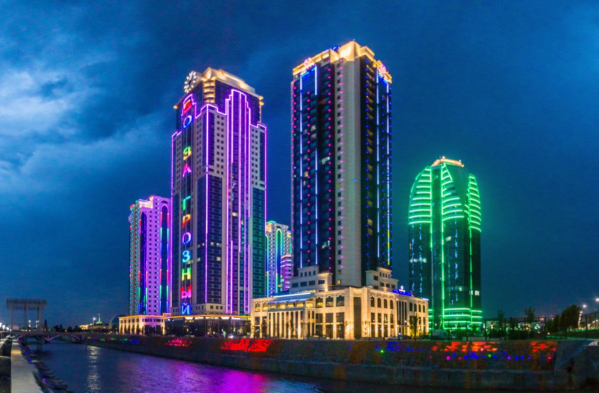 Комплекс высотных домов «Грозный-сити» из семи самых высоких зданий в России, расположенными вне города Москвы: одно 40-этажное, два 30-этажных, два 28-этажных и два 18-этажных. На крыше одного из них, на высоте 120 м, находится смотровая площадка, куда Вы поднимитесь, чтобы увидеть панораму города с высоты. Спустившись вниз, прогуляетесь по Цветочному парку. Его территория в 4,5 га содержит 150 тысяч цветов, размещенных на 467 металлических конструкциях, 18 тысяч кустов и 500 деревьев. В парке установлены скульптуры животных, функционирует фонтан, украшенный 18-метровыми национальными башнями.