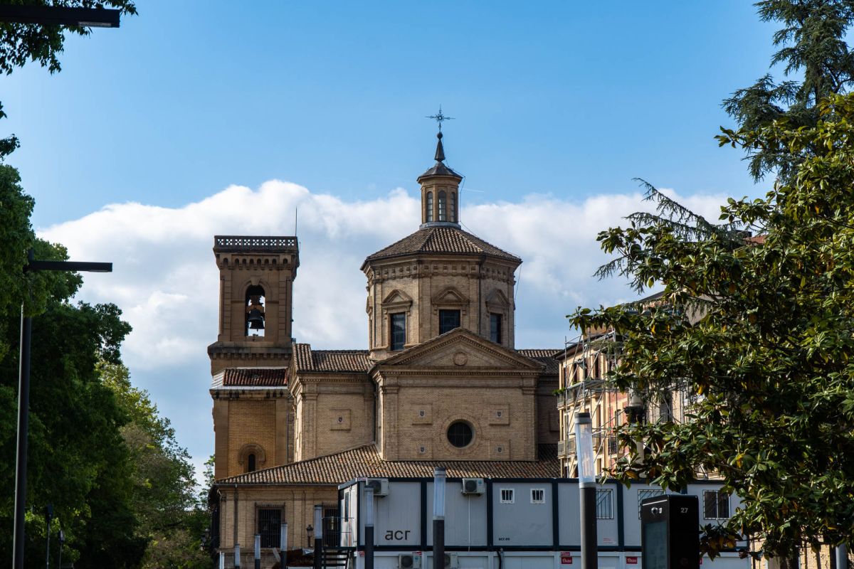 То, что было крепостью, расположено на одном из концов улиц Calle Mayor и Calle Taconera и было частью оборонительной системы города. Сохранились скрытые остатки здания 14 века. Нынешний, простой неоклассический неф, является работой 1805 года Хуана Антонио де Пагола. Предыдущий фасад в стиле барокко пострадал от бомб, выпущенных генералом Леопольдо О'Доннеллом из Цитадели, поэтому он был демонтирован, а нынешний фасад был построен Флоренсио де Ансолеага в 1901 году. Первоначальная вертикаль уменьшилась, когда пирамидальная надстройка над колоколами исчезла