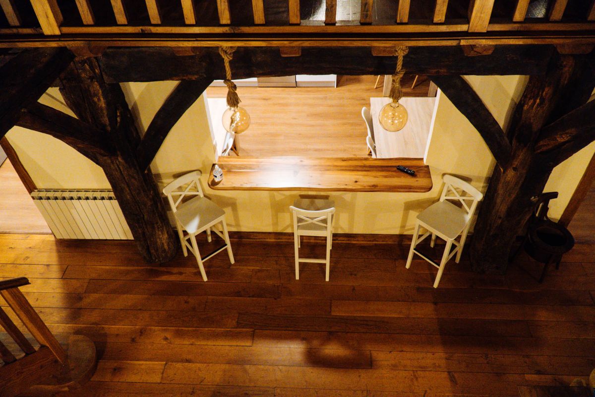 В загородном доме есть общая гостиная с камином, где гости могут отдохнуть после дня, проведенного на природе, а также полностью оборудованная кухня с посудомоечной машиной и духовкой. Во дворе есть барбекю и сад с прекрасным видом на горы.