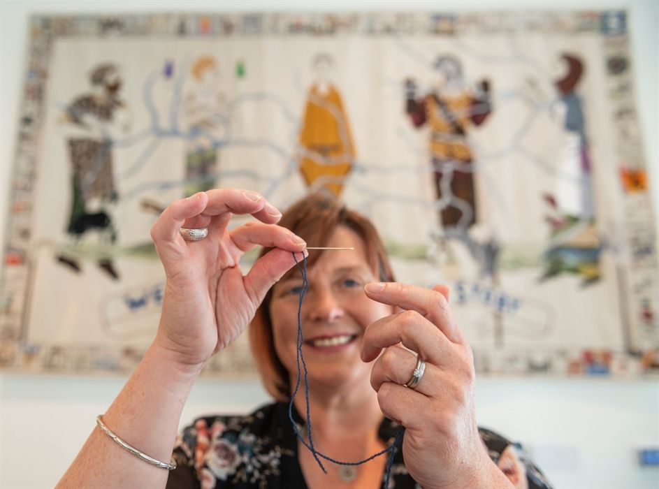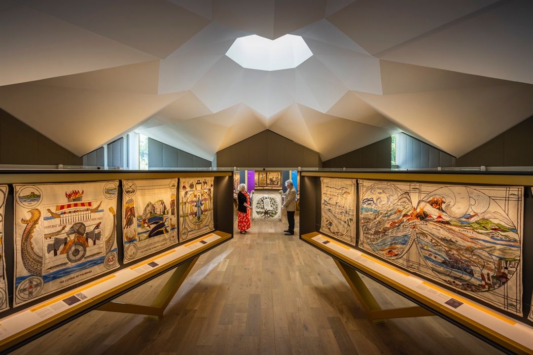 Центр был специально построен для размещения Великого гобелена Шотландии, который был создан и сшит вручную 1000 человек со всей Шотландии. Гобелен представляет собой убедительный визуальный отчет об истории, наследии и культуре Шотландии с момента ее образования до наших дней. Это было видение одного из самых любимых писателей в мире Александра Макколла-Смита, созданное художником Эндрю Крамми и командой швейеров по всей Шотландии на основе повествования, написанного отмеченным наградами писателем и историком Алистером Моффатом. Он состоит из 300 миль шерсти (достаточно, чтобы проложить всю длину Шотландии от границы с Англией до оконечности Шетландских островов в Северной Атлантике).