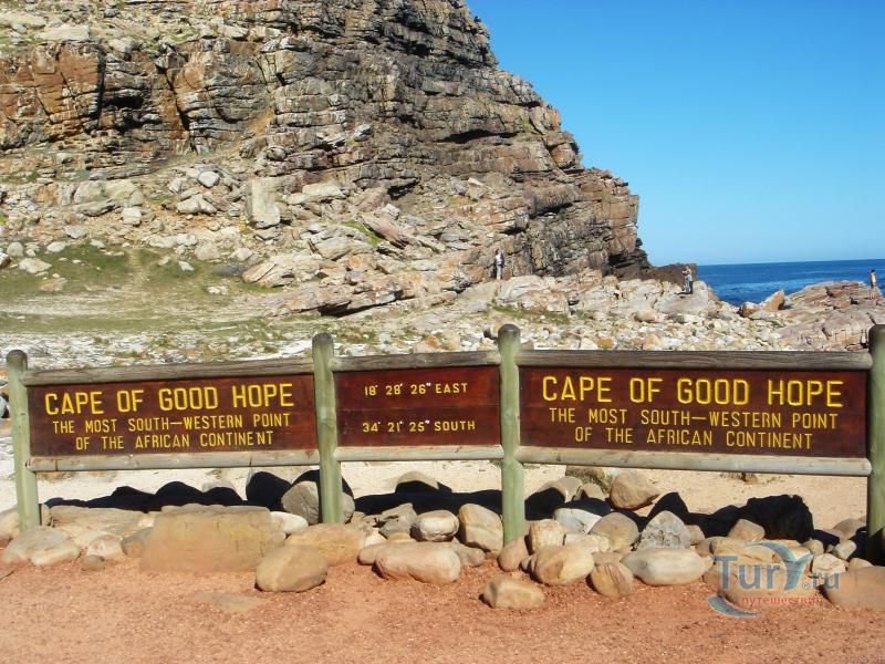 Мыс Доброй Надежды - одно из самых известных мест в Африке. Долгое время он считался крайней южной точкой континента. Но затем выяснилось, что самой южной точкой Африки является мыс Игольный, удаленный от мыса Доброй Надежды на 155 км к юго-востоку. Несмотря на это, Мыс Доброй Надежды приобрел известность на весь мир, и до сих пор пользуется популярностью среди туристов. Сейчас он считается самой крайней юго-западной точкой Африки, что подтверждает и надпись с точными координатами, установленная на площадке перед мысом.