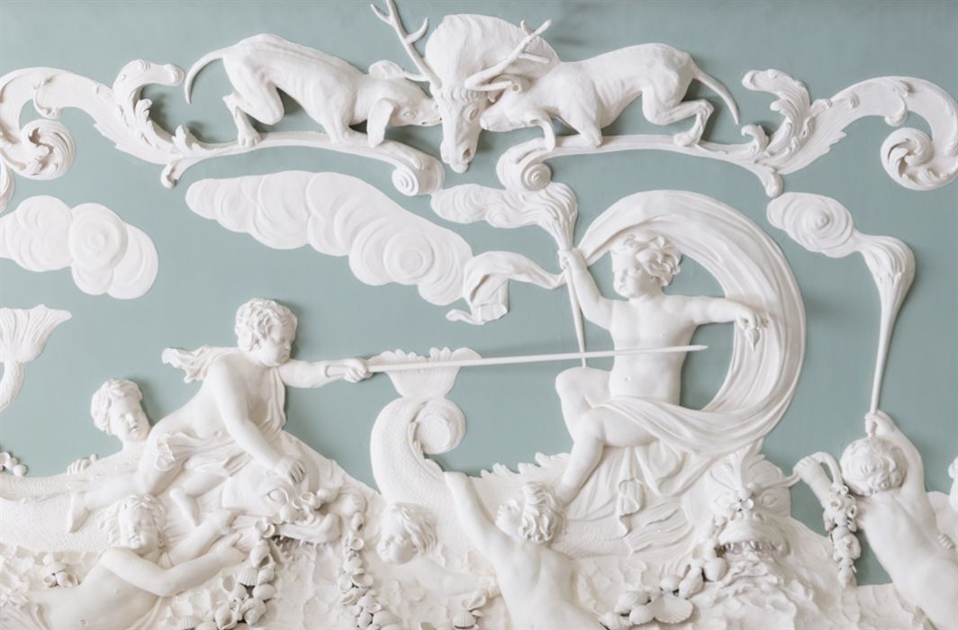 На это ушло 13 лет, и точность проявляется в мельчайших деталях. Штукатурка Джозефа Энцера в салоне выполнена мастерски – классические картины и фамильные гербы густо вздымаются со стен и потолков филигранными завитушками. По всему дому одинаково впечатляют сшитые вручную шерстяные изделия и вышивки леди Августы ФитцКларенс, дочери Вильгельма IV и актрисы Дороти Джордан.