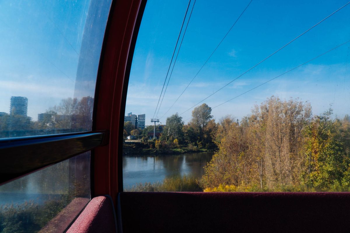В настоящее время по реке Одре курсируют два вагона. Его пассажирам требуется менее трех минут, чтобы добраться от одного берега до другого. За час канатная дорога перевозит до 370 пассажиров в каждую сторону. В вагоне может разместиться до 15 человек (10 сидячих и 5 стоячих мест).