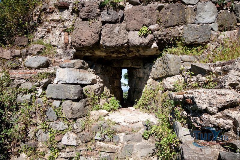 А в 2010 или 2011 году при очистке стен крепости обнаружился крест, выложенный керамическими плитами и украшавший главные (восточные) ворота. Крест изображен справа от входа.