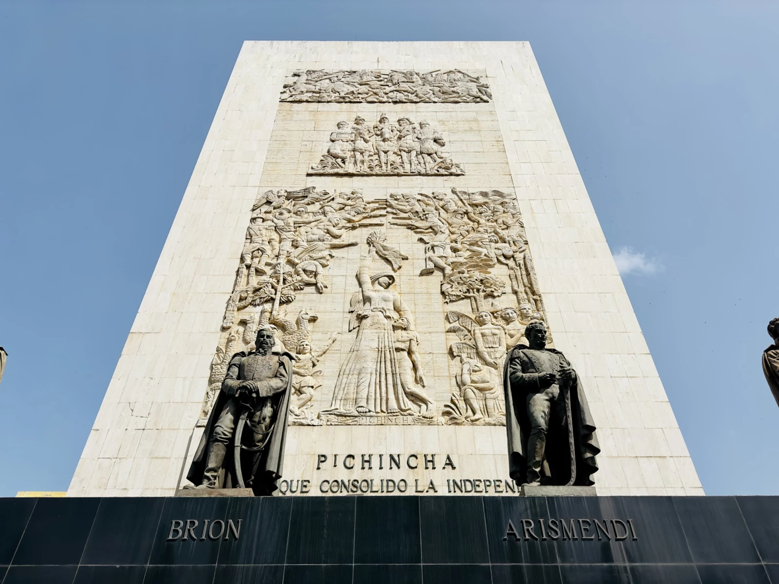 На монолитах можно детализировать имена венесуэльских героев и рельефное изображение сражений Аякучо, Бояка, Пичинча, закрепивших независимость боливарианских стран.