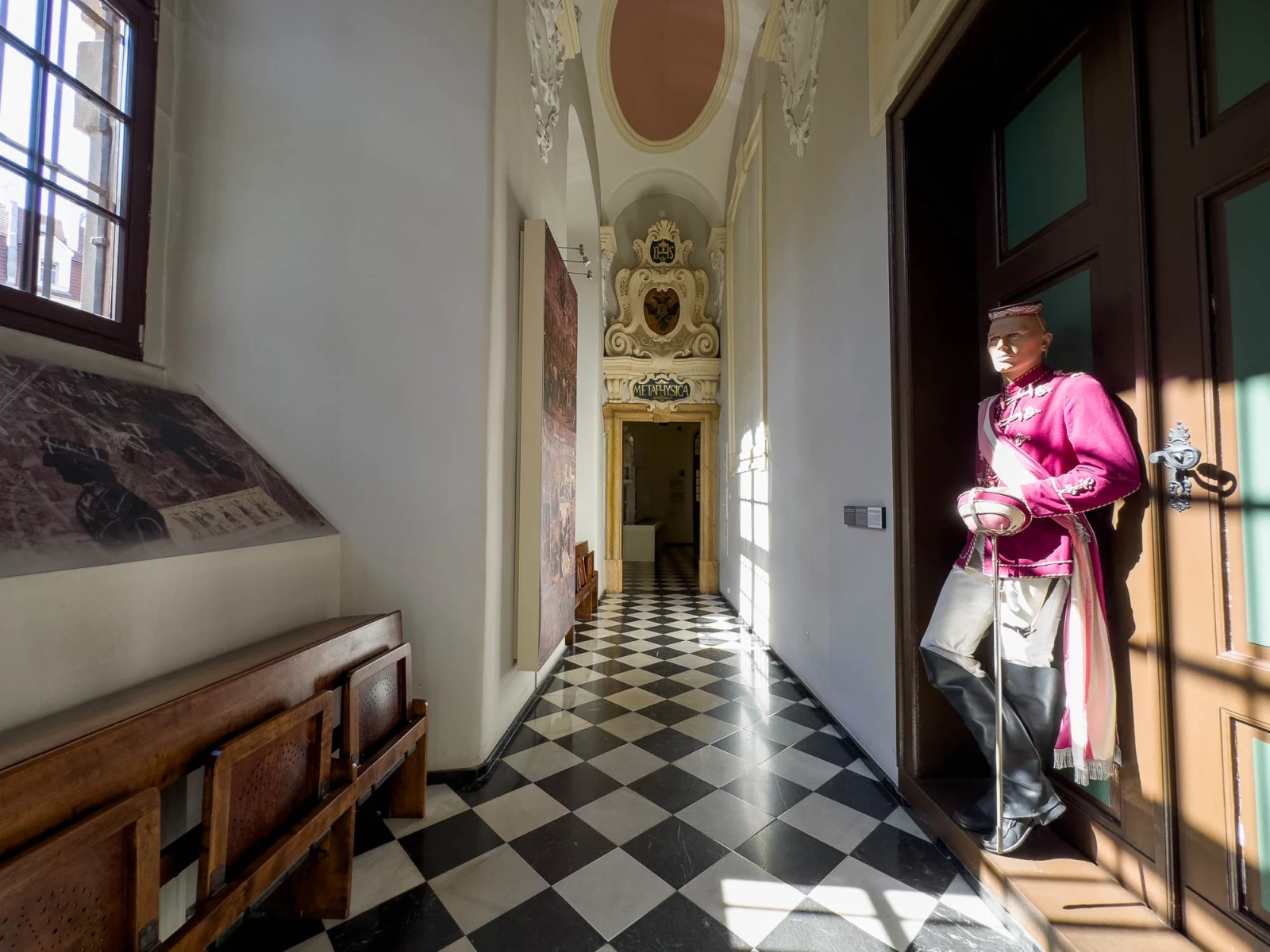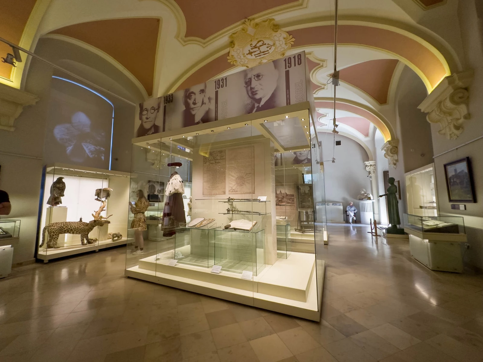Особое внимание в музее уделено архитектуре самого университетского комплекса, который является прекрасным примером барочной архитектуры. Здание университета, включая знаменитую Аулу Леопольдина, украшено многочисленными фресками, статуями и художественными произведениями, которые также являются частью экспозиции музея.