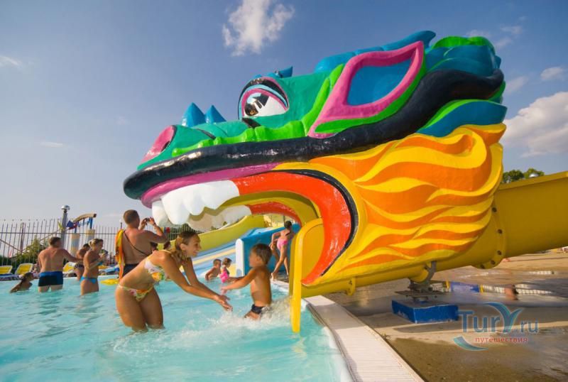 Любителей водных приключений порадуют 11 горок разной крутизны и высоты, длины и назначения, которые удовлетворят запросы любого посетителя. Водные горки "Черная дыра" и "Камикадзе" для тех, кто любит мощный приток адреналина - это самые крутые горки во всей Анапе. "Желтая река" - самый спокойный аттракцион и, в то же время, самый продолжительный. 110-метровая "Желтая река" - для любителей спокойных спусков, а для предпочитающих водный экстрим - самые крутые горки "Камикадзе" и "Черная дыра". Чтобы получить порцию адреналина нужно прокатиться на "Горном потоке", "Твистере", "Узле", "Петле", "Спирале" и "Пене". А новый аттракцион "Лампа Алладина" подарит ни с чем не сравнимые ощущения. Для самых маленьких гостей работают аттракционы: детский комплекс "Остров сокровищ", "малая пена", "Дракоша", "Морячок" и бассейн "Морская волна". А в 2009 году были открыты новые горки: "Камикадзе экстрим" для любителей пощекотать нервы и "Семейный рафтинг" - вся семья умещается в большом плоту и отправляется по крутым изгибам этого аттракциона.