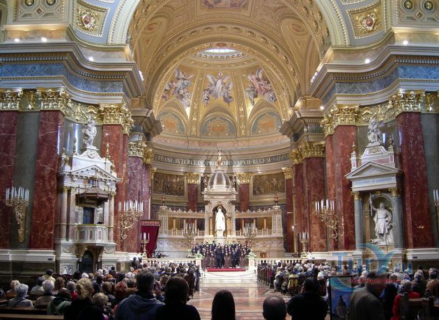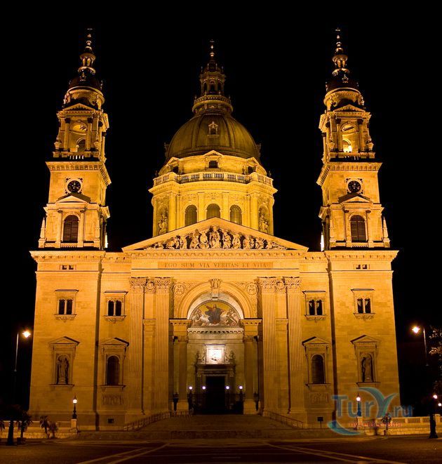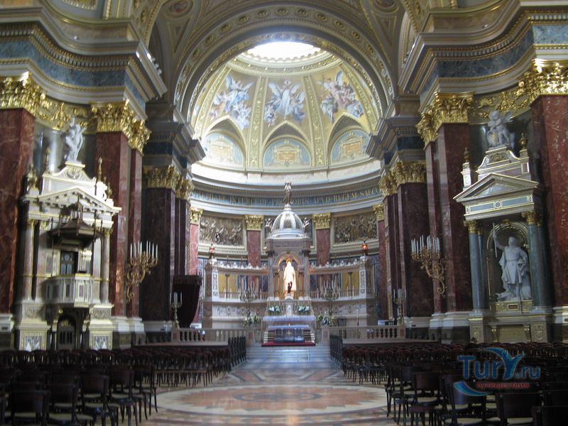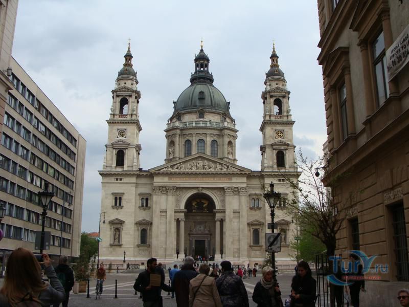 Базилика святого Иштвана является самым крупным храмом Будапешта: длина собора - 87,4 метра, ширина - 55 метров, высота - 96 метров. Храм построен в 1891-1905 годах в стиле неоклассицизм, в плане представляет собой равносторонний крест. В месте пересечения поперечного трансепта с главным нефом расположен массивный купол высотой 96 метров и диаметром 22 метра. По бокам от главного фасада расположены две высокие колокольни. В правой колокольне находится самый большой колокол страны весом в 9 тонн. Резная парадная дверь выполнена из дерева и украшена изображениями 12 апостолов.