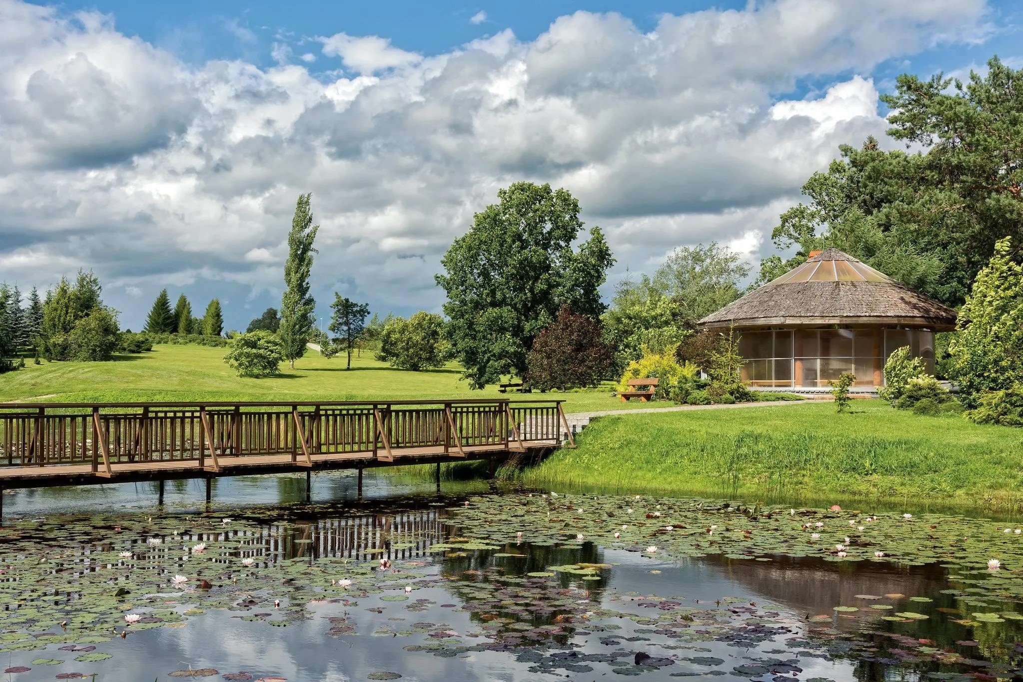 Вы можете совершить расслабляющую прогулку по «рододендроновой тропе» в сосновом лесу. Вы можете перейти пруд по мостику, увидев многообразие красок водяных лилий. Калснавский дендрарий — это чудесный сад, который цветет круглый год.