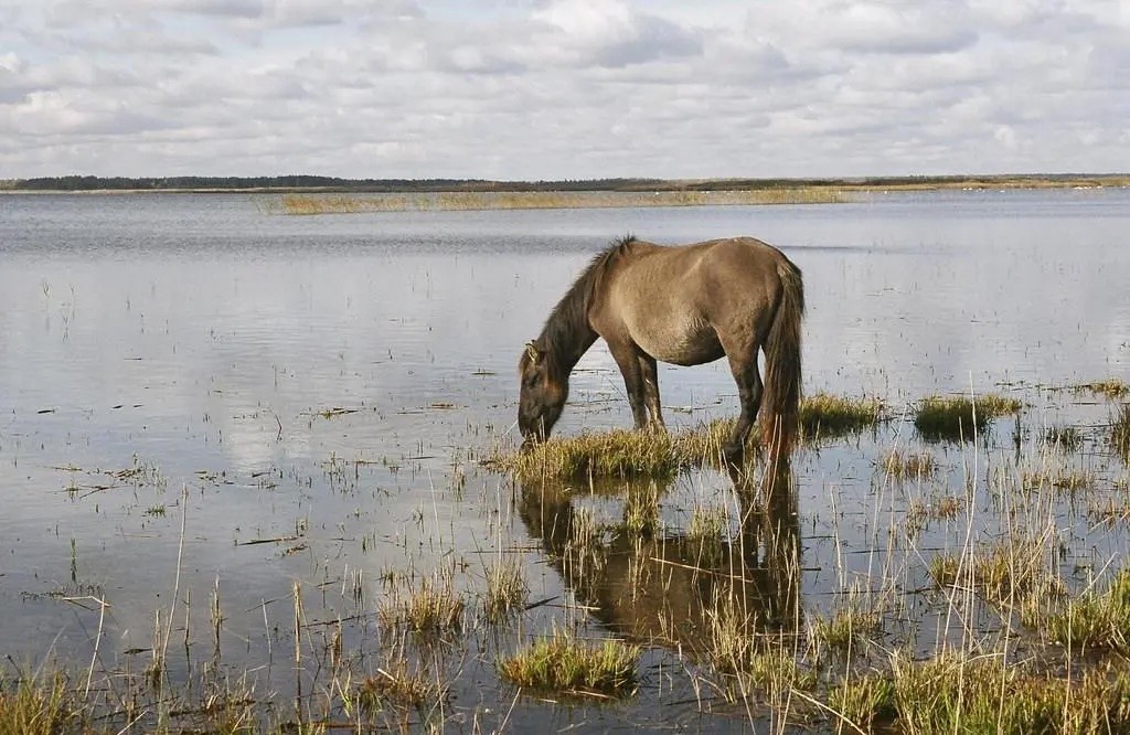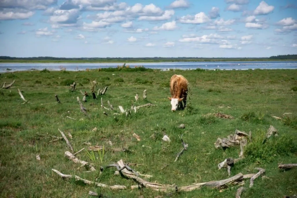 На лугах у озера пасутся латвийские бурые, горные, герефордские и шароле коровы, а также лошади польской и коникской породы.