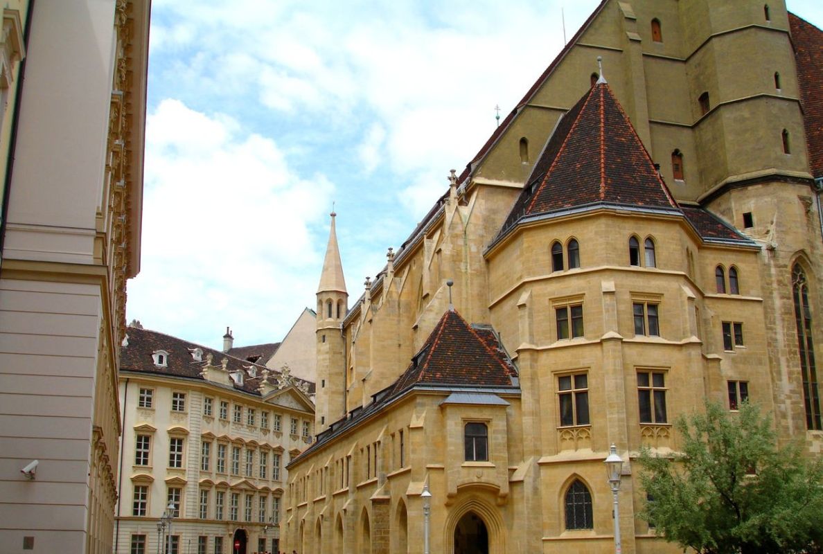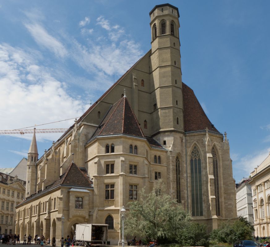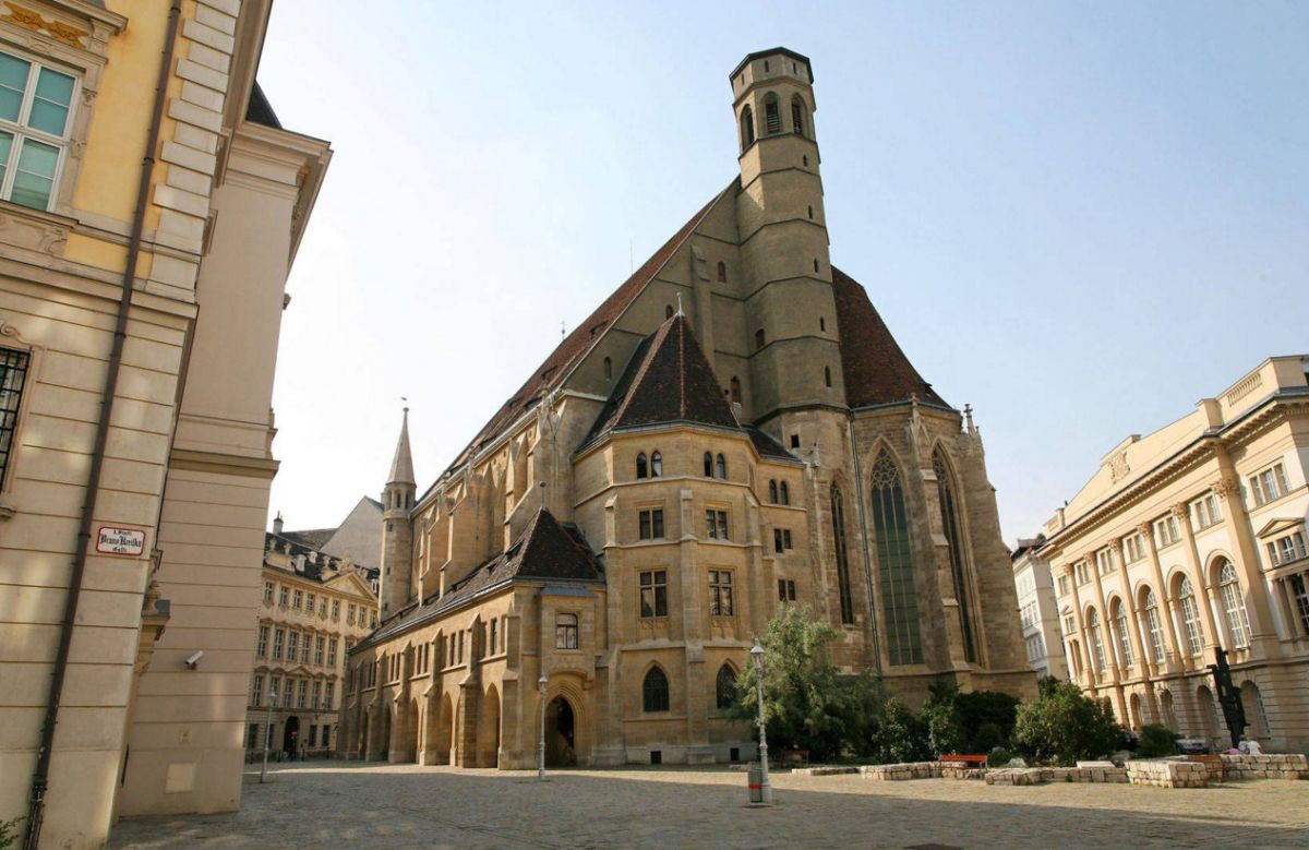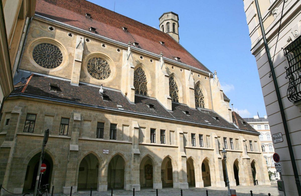 Церковь миноритов была заложена в 1275 году, став одной из первых церквей в готическом стиле в Вене. Первые изменения в архитектуре здания произошли довольно быстро: в 1328 году была построена часовня в честь Людовика IX Святого. Часовня имела отдельный вход и не соединялась с церковью. Однако, объединение произошло уже в 1340 году, создав трехнефное единое помещение.