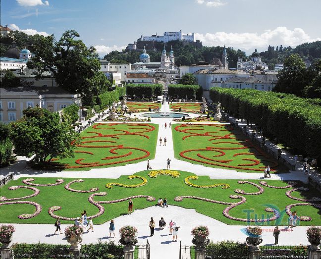 Зальцбург – прекрасный барочный город, и в том же барочном стиле выстроен и знаменитый зальцбургский дворец Мирабель. Этот дворец построил князь-архиепископ Вольф Дитрих фон Райтеньо для своей любовницы Саломеи Альт, родившей ему 15 детей. В 1690 году рядом с Дворцом Мирабель, на месте бывших огородов, был разбит великолепный барочный сад по проекту ландшафтного архитектора Йоханна Бернхарда Фишер фон Эрлаха. Первоначально и резиденция, и сад носили имя Альтенау. Дворец перестраивался, горел, и, в результате, немного осталось от его первоначального вида. А вот сад Мирабель был переустроен в 1730 году и сейчас выглядит почти так же, как и в те годы – террасы, мраморные скульптуры и фонтаны, хотя и был восстановлен по старинным чертежам и рисункам. В бывшем птичьем вольере расположен выставочный павильон. В саду Мирабель есть и один из старейших в этом роде «зеленый театр», и сад гномов, выглядящих мрачными и уродливыми – это господам тех лет казалось забавным. Одна их самых популярных экскурсий в городе - «По следам «Звуков музыки»». Именно в саду Мирабель дети распевали «До-ре-ми».